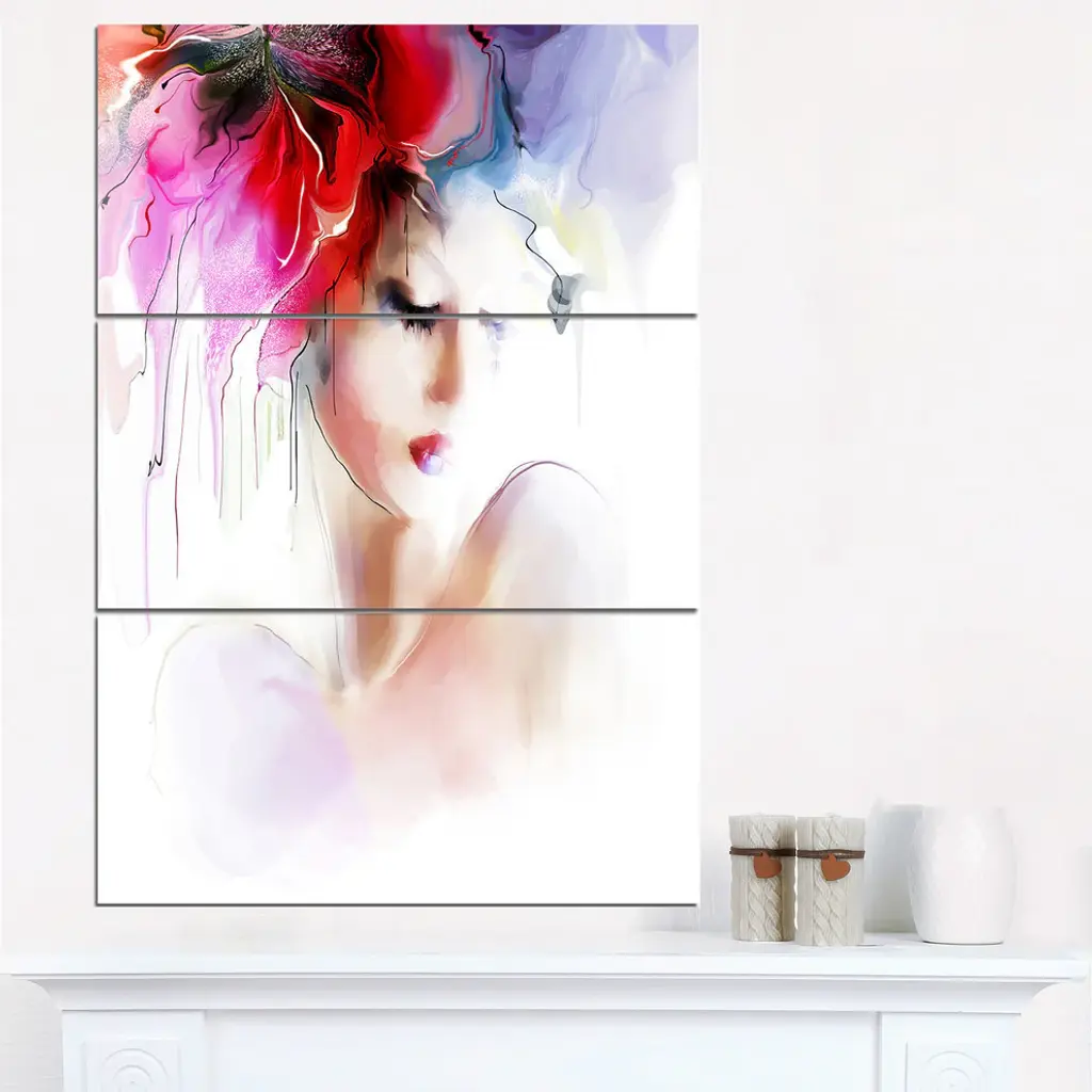 "Fashion Woman Illustration" Digital Glossy Metal Wall Art, 3 Panels, 28"x36"