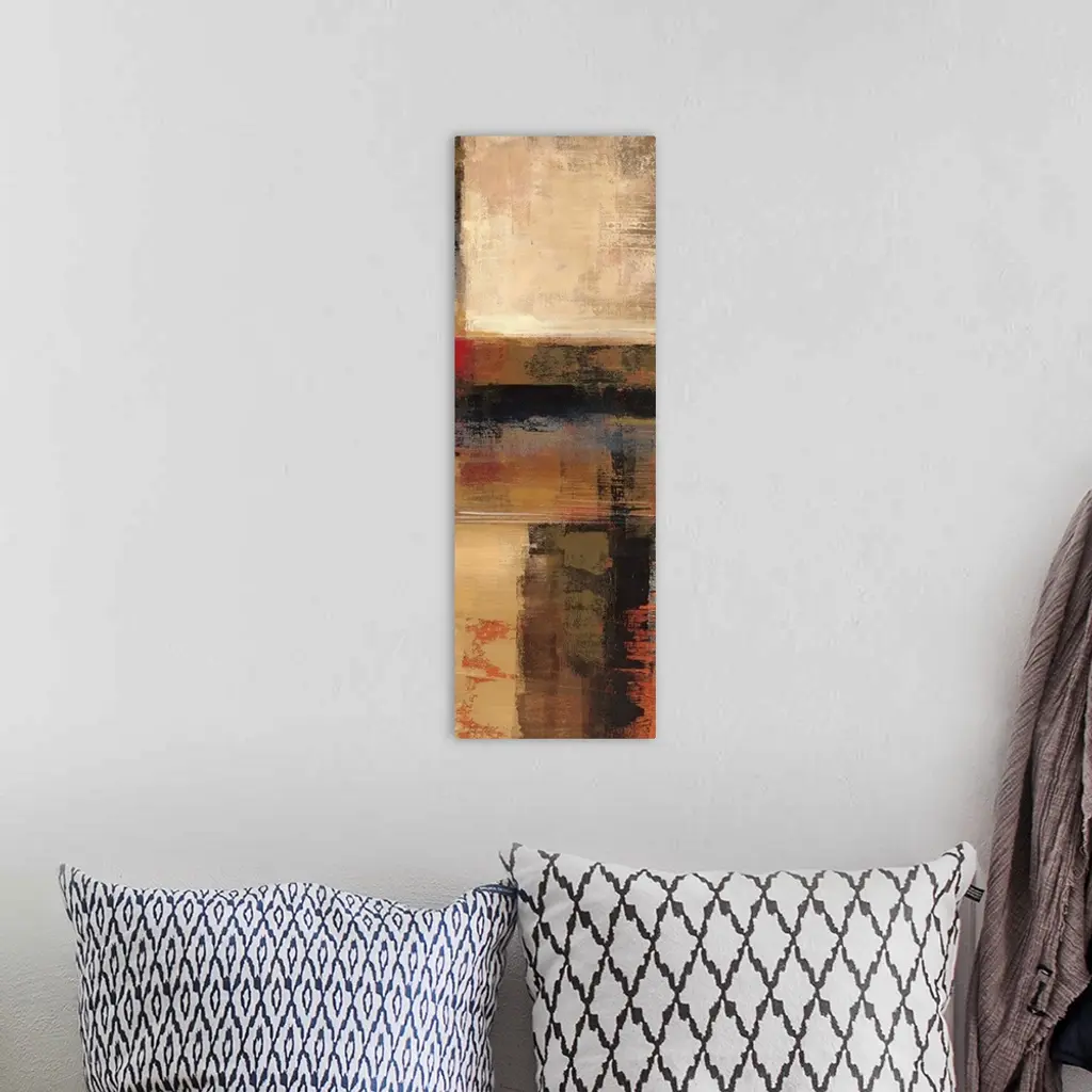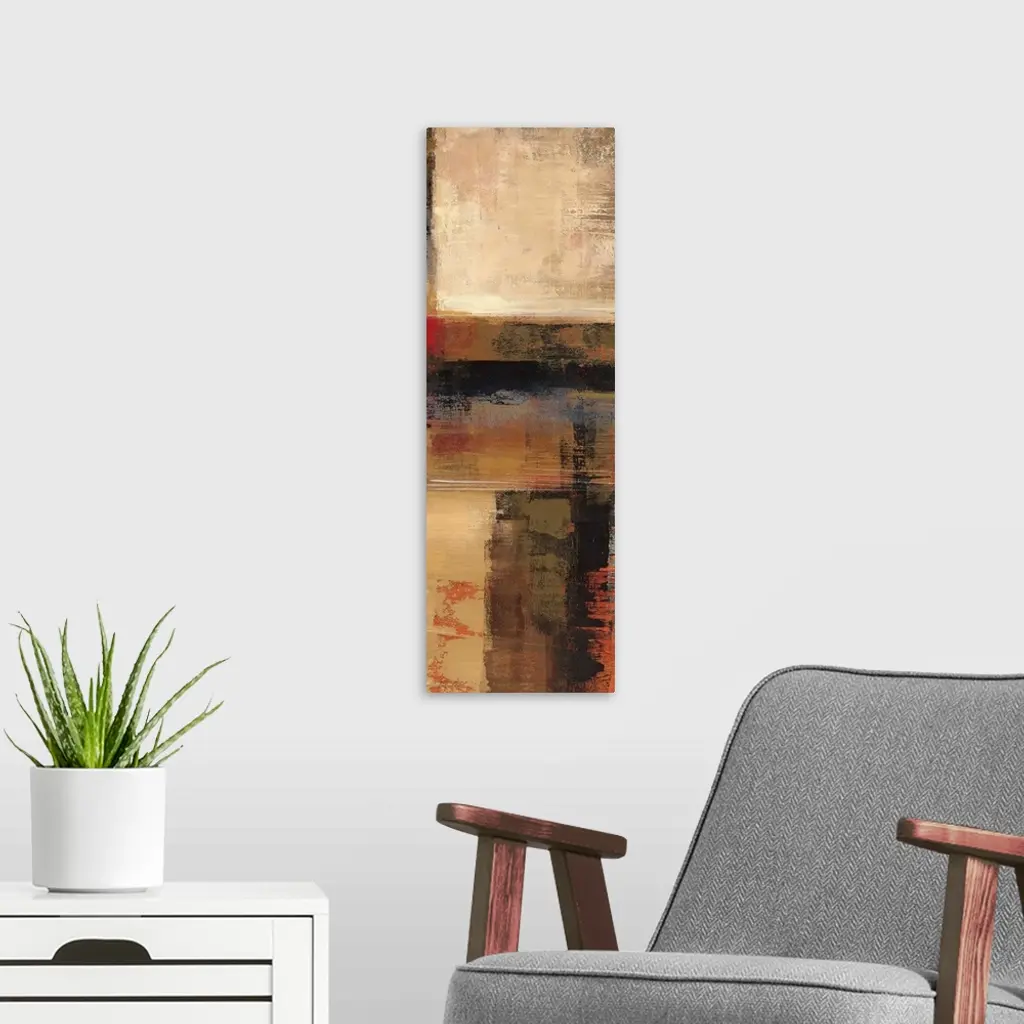 Abstract painting with different earth toned strokes.