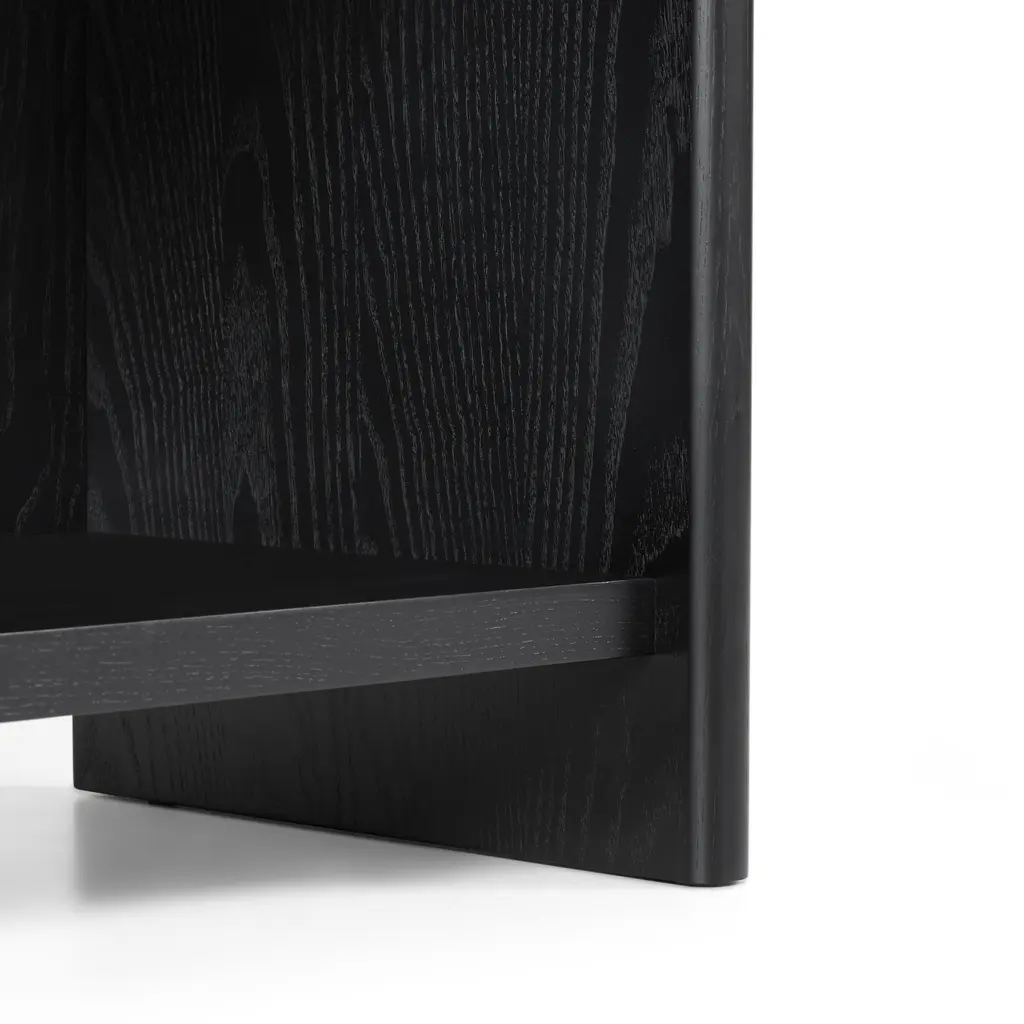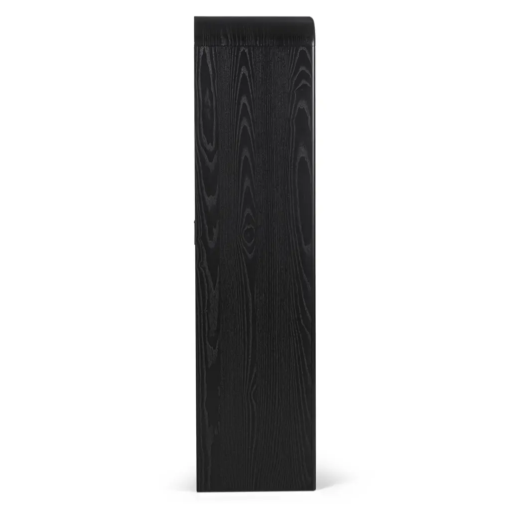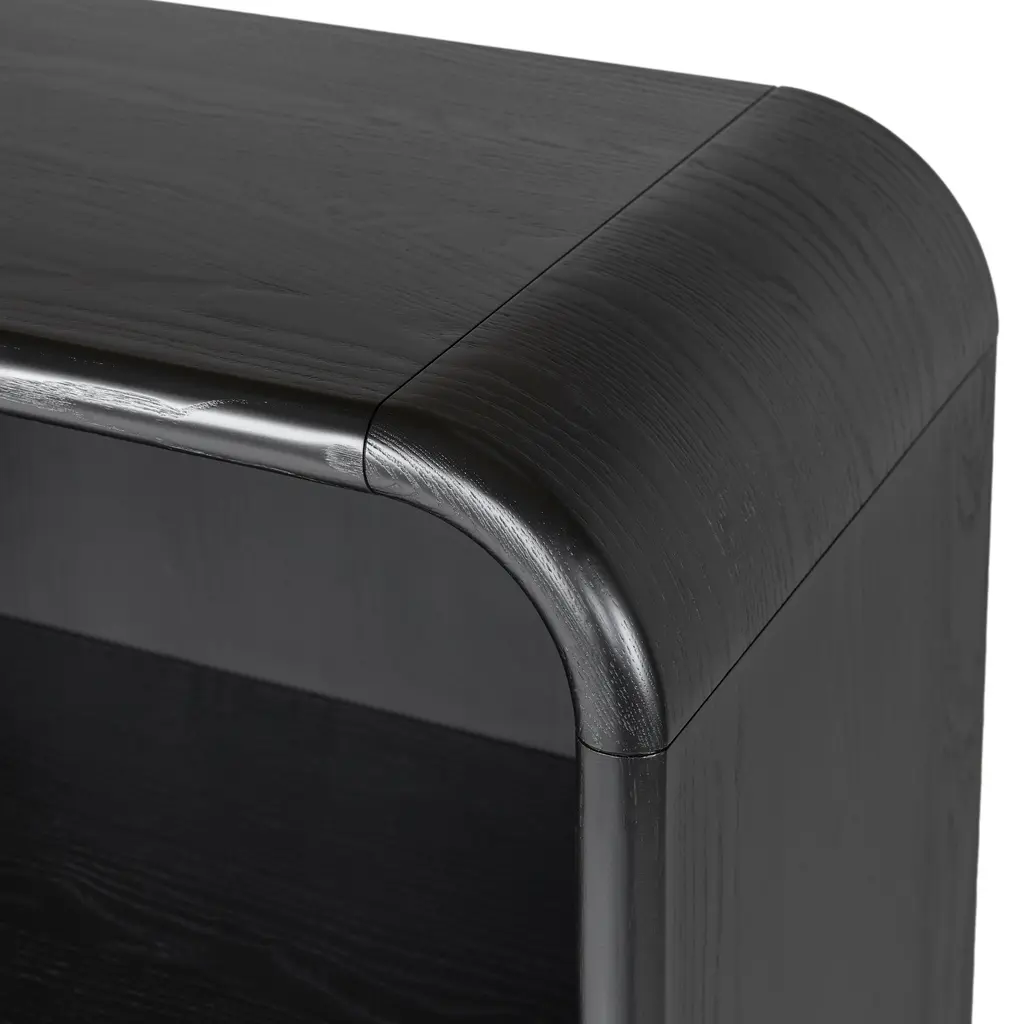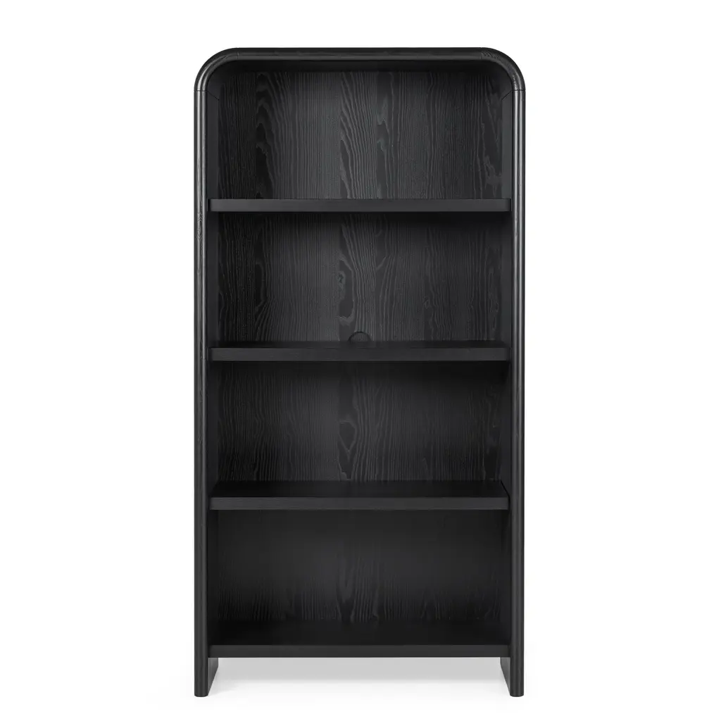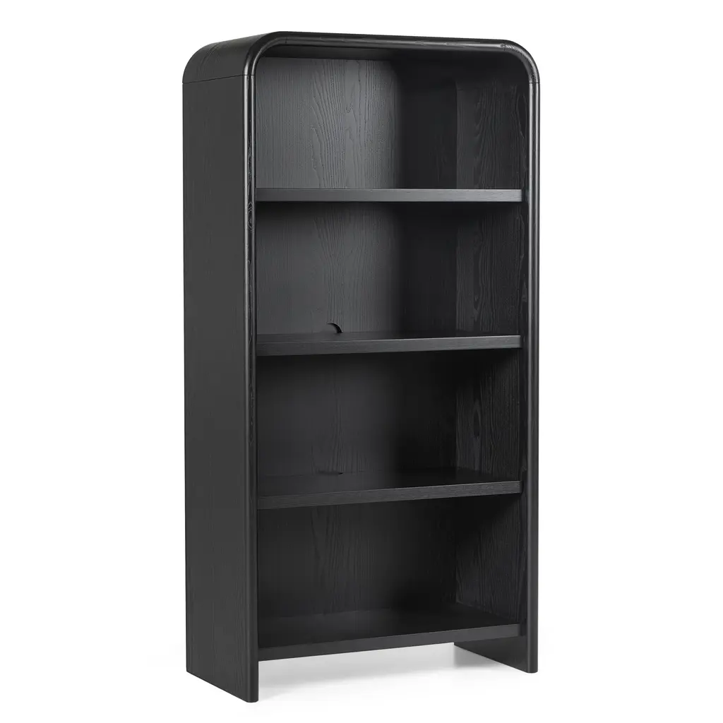 A design that's ahead of the curve. The Faydra bookshelf is a bookcase that's also an art piece. With a unique sloping design and sturdy shelves, the Faydra is more than just a pretty storage option: a veneered exterior and smart hidden cable management, this is a beautiful place to store your favorite titles, to display your treasured mugs, or to wire up your speakers.
