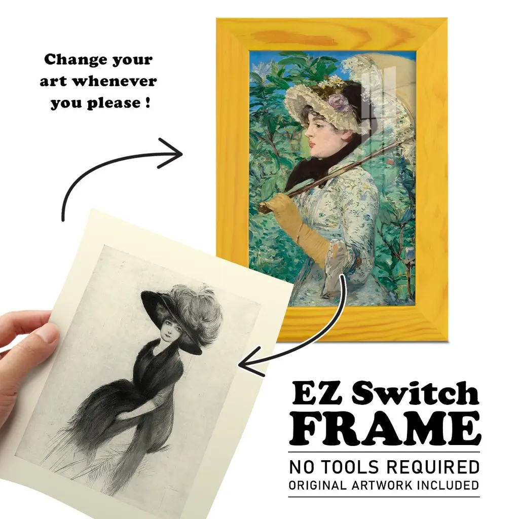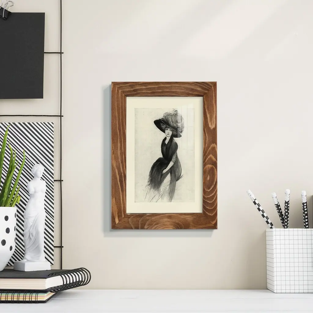 Feather Hat II -EZ SWITCH Framed Print w/glass-Cherry Red A delightful, framed print. Featuring a solid wood frame with real wood glass. This premium print is giclee quality. In addition, every frame features a removable back and table top stand. This allows you to change your art in the future or to just stand the art on a table for a new look. We are sure you'll enjoy our new series of EZ SWITCH Framed Art. Solid Wood Frame Real Glass Removable / Replaceable Art Built in Tabletop Stand Sizes range from 4x6 up to 12x15 - buy just one or pair them up as sets as you see fit.