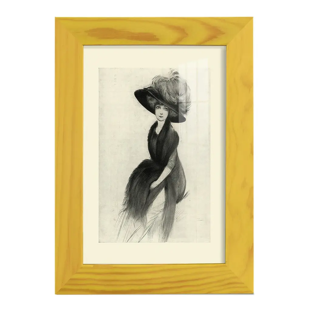 Feather Hat Ii -Framed Print W/glass-Cherry Red - 12x15 - Yellow