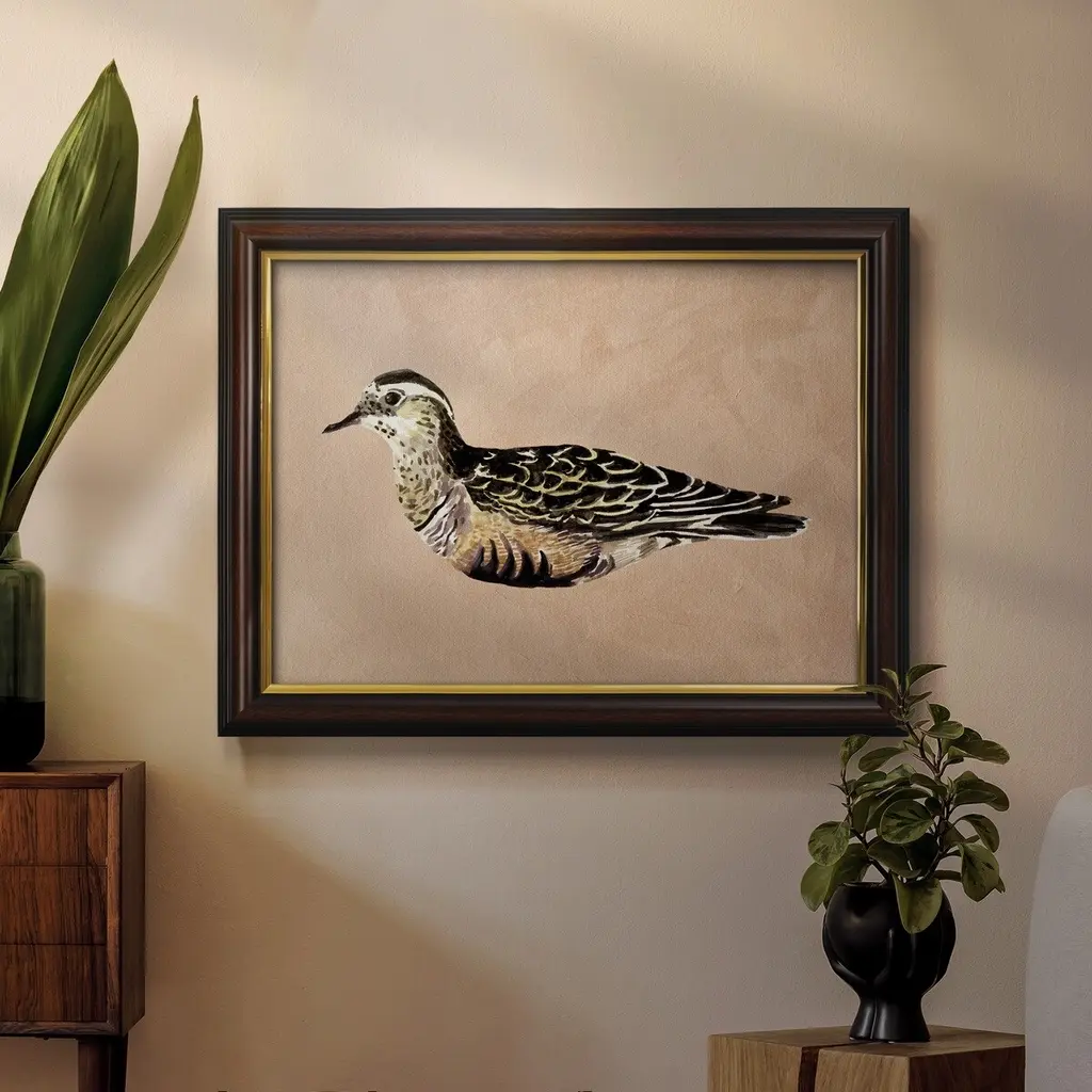 Feathered Friend III Premium Framed Canvas- Ready to Hang A Premium Framed Canvas created to last. Framed in distressed wood and available in an array of sizes and colors Featuring a beveled a solid wood stretcher bar, each piece comes ready to hand 3 SIZES AVAILABLE 16''X20'' - Overall Size 18'X27'' - Overall Size 24''x36'' - Overall Size Each piece is made to order. Each piece comes with hanging hardware. Made in the USA Ready to Hang Giclee Paper Print Acrylic Glass Beveled Matt Board
