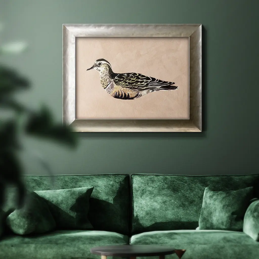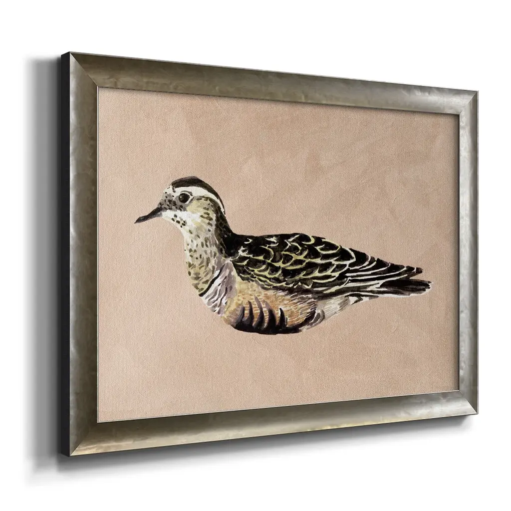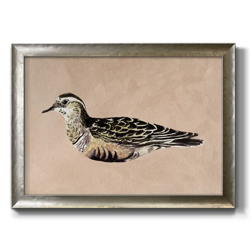 Feathered Friend III Premium Framed Canvas- Ready to Hang A Premium Framed Canvas created to last. Framed in distressed wood and available in an array of sizes and colors Featuring a beveled a solid wood stretcher bar, each piece comes ready to hand 3 SIZES AVAILABLE 16''X20'' - Overall Size 18'X27'' - Overall Size 24''x36'' - Overall Size Each piece is made to order. Each piece comes with hanging hardware. Made in the USA Ready to Hang Giclee Paper Print Acrylic Glass Beveled Matt Board
