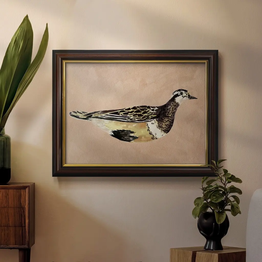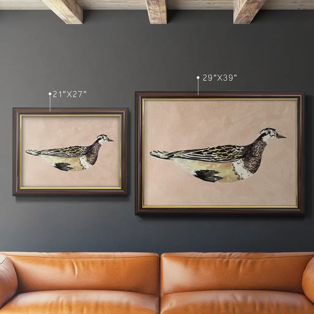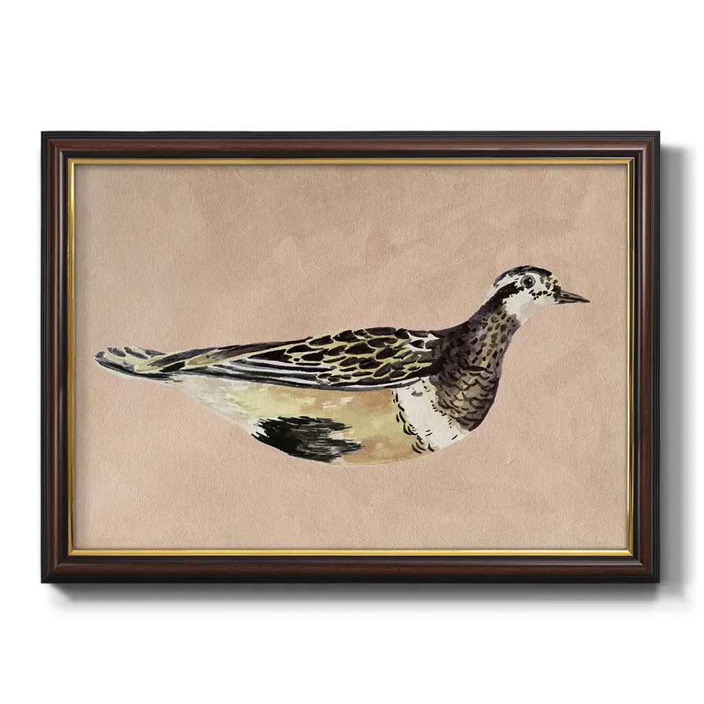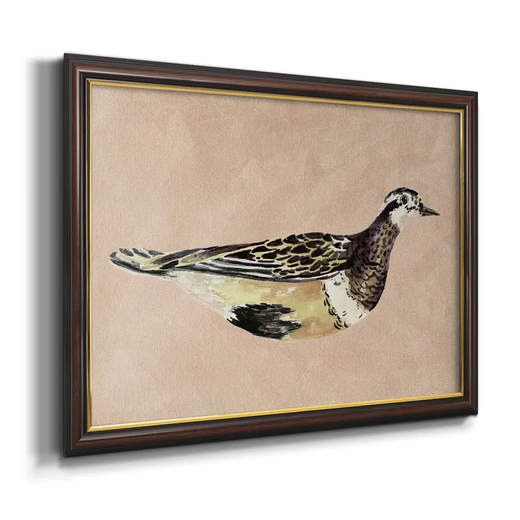 Feathered Friend IV Premium Framed Canvas- Ready to Hang A Premium Framed Canvas created to last. Framed in distressed wood and available in an array of sizes and colors Featuring a beveled a solid wood stretcher bar, each piece comes ready to hand 3 SIZES AVAILABLE 16''X20'' - Overall Size 18'X27'' - Overall Size 24''x36'' - Overall Size Each piece is made to order. Each piece comes with hanging hardware. Made in the USA Ready to Hang Giclee Paper Print Acrylic Glass Beveled Matt Board