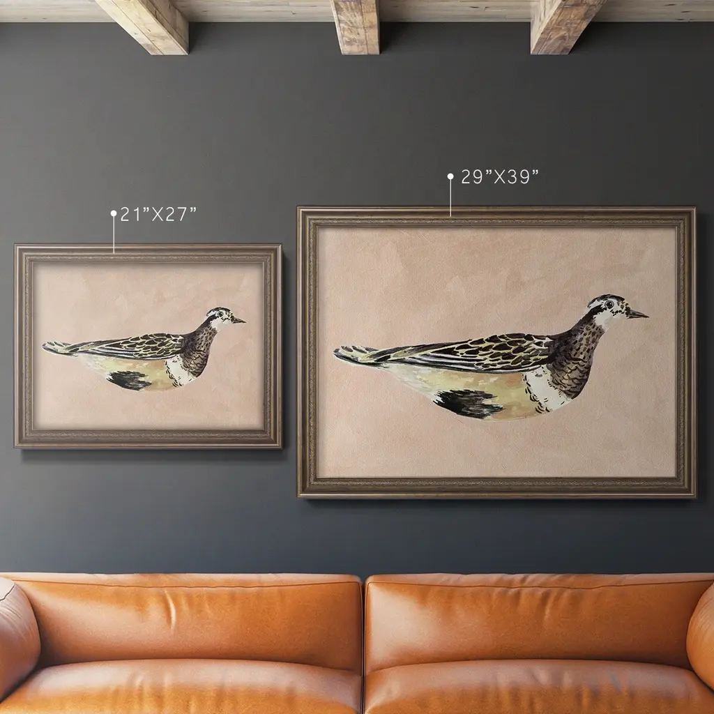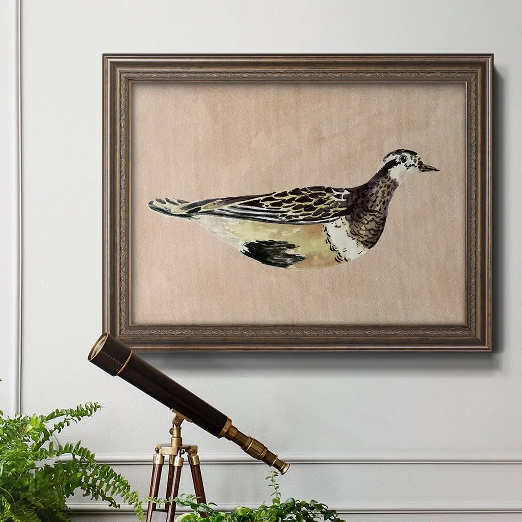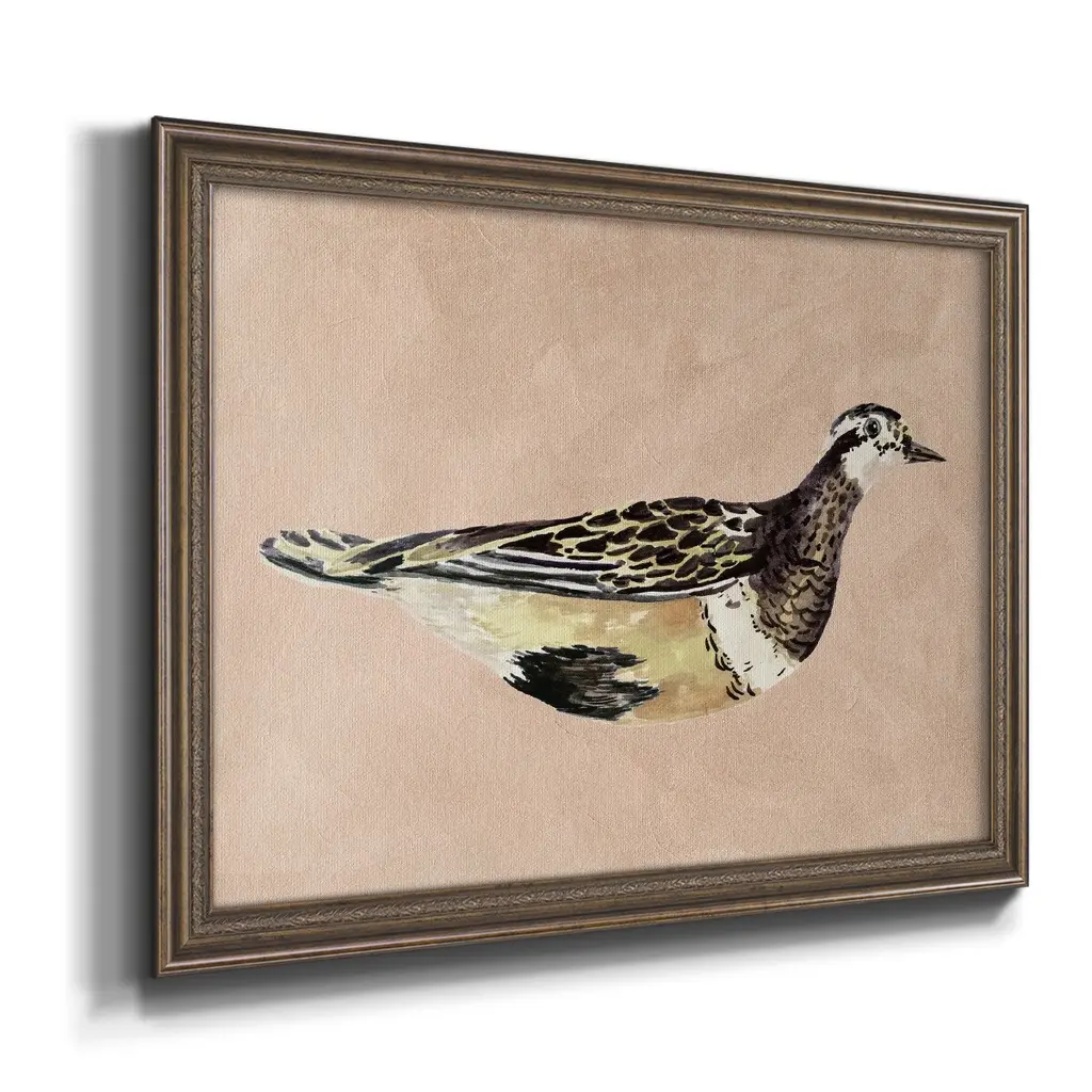 Feathered Friend IV Premium Framed Canvas- Ready to Hang A Premium Framed Canvas created to last. Framed in distressed wood and available in an array of sizes and colors Featuring a beveled a solid wood stretcher bar, each piece comes ready to hand 3 SIZES AVAILABLE 16''X20'' - Overall Size 18'X27'' - Overall Size 24''x36'' - Overall Size Each piece is made to order. Each piece comes with hanging hardware. Made in the USA Ready to Hang Giclee Paper Print Acrylic Glass Beveled Matt Board