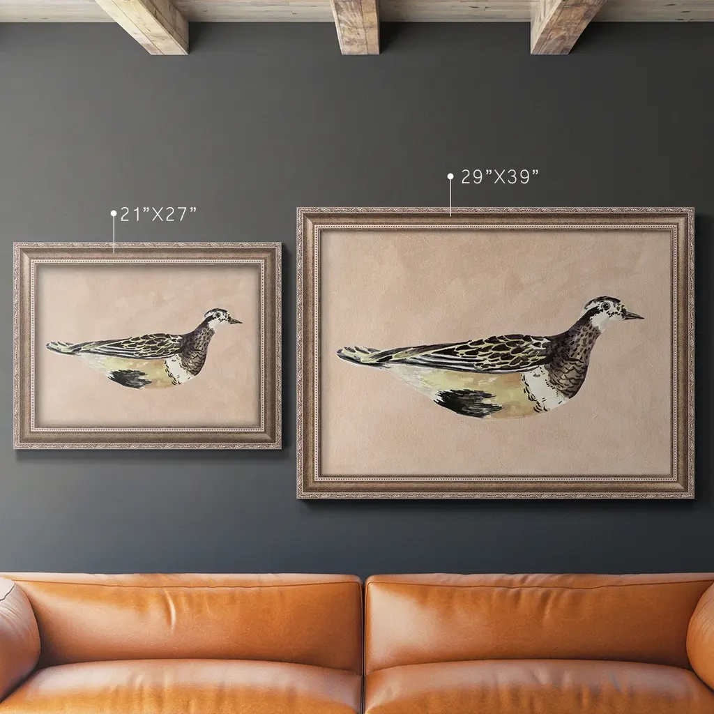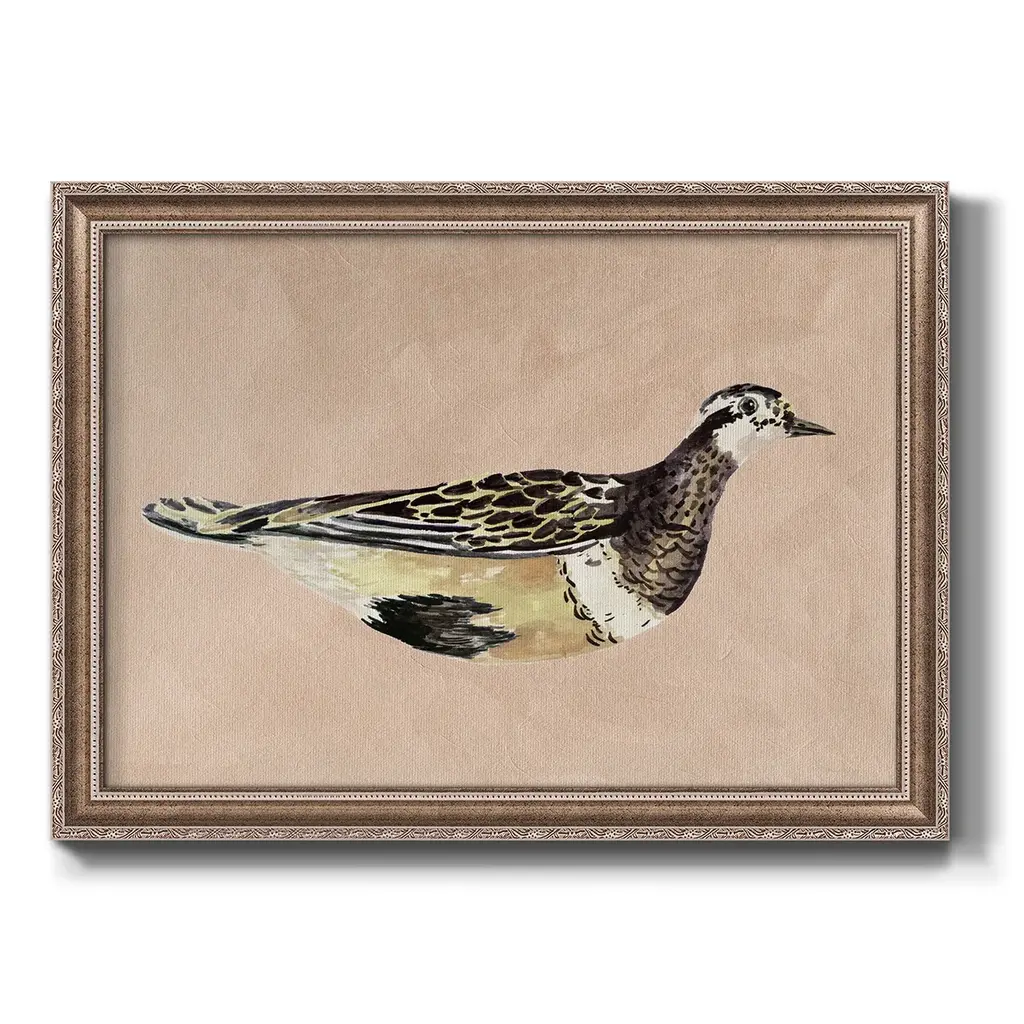 Feathered Friend IV Premium Framed Canvas- Ready to Hang A Premium Framed Canvas created to last. Framed in distressed wood and available in an array of sizes and colors Featuring a beveled a solid wood stretcher bar, each piece comes ready to hand 3 SIZES AVAILABLE 16''X20'' - Overall Size 18'X27'' - Overall Size 24''x36'' - Overall Size Each piece is made to order. Each piece comes with hanging hardware. Made in the USA Ready to Hang Giclee Paper Print Acrylic Glass Beveled Matt Board