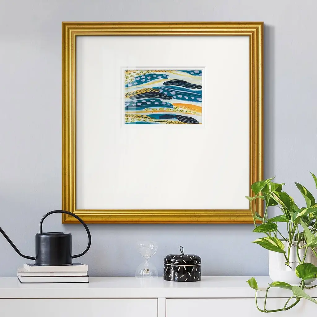 Feathery IVPremium Framed Print A framed cold pressed paper print featuring superior double matting and quality frame. 2 SIZES AVAILABLE 16''X16''' - Overall Size 20''X20''' - Overall Size Each piece is made to order. Each piece comes with hanging hardware. Made in the USA Ready to Hang Giclee Paper Print Plexiglass Beveled Matt Board Double Matte Board