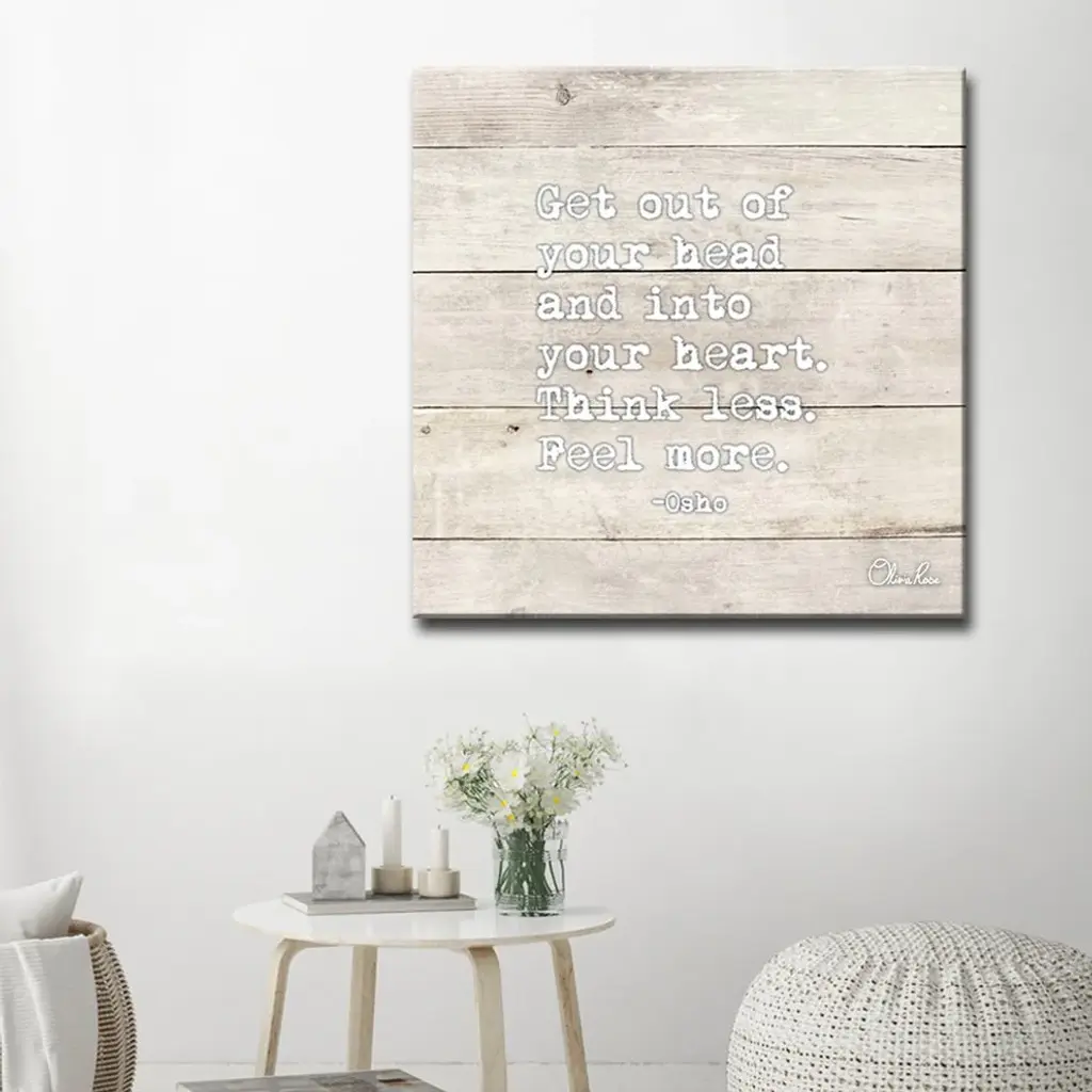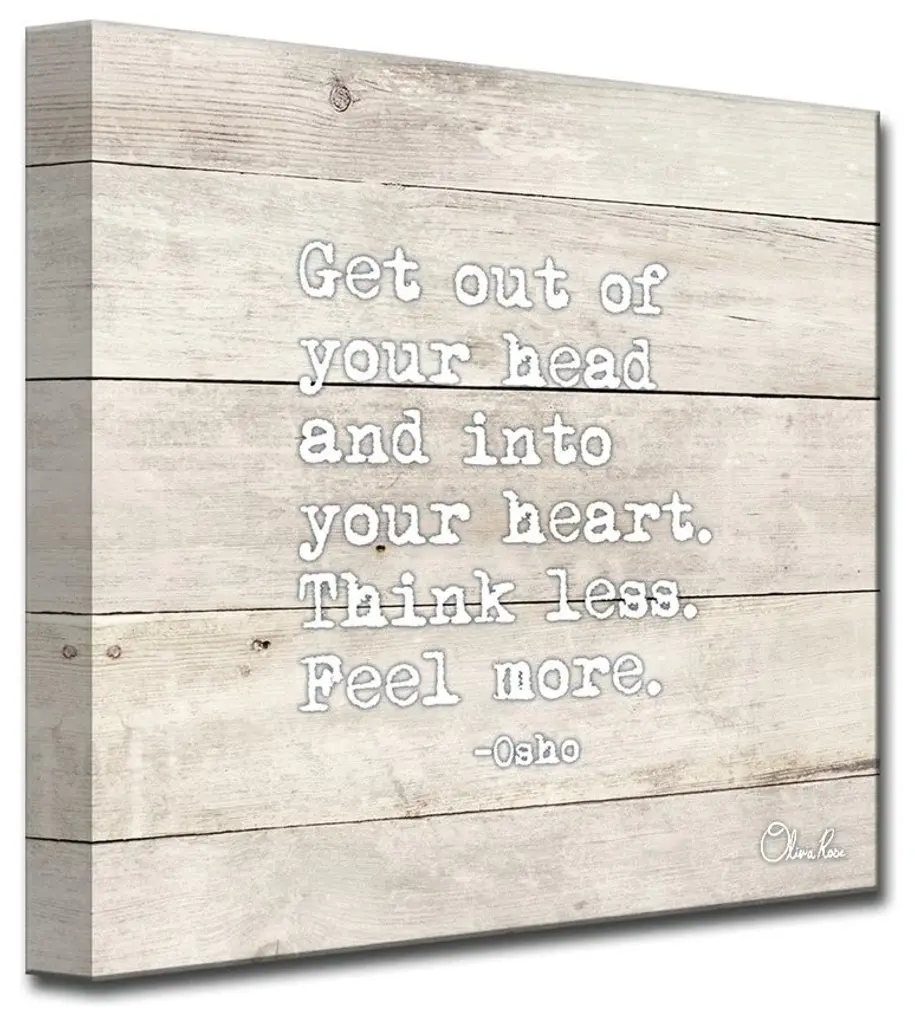Be Inspired and Inspire with Olivia Rose ''Feel More'' Inspirational Wall Art. ''Think Less. Feel More.'' wise words in this Textual Art Made in the USA by Ready2HangArt. The Canvas Art Print is produced on water resistant canvas with a UV-Resistant gloss coating and wrapped on a wood frame. Brand: Olivia RoseTitle: Feel MoreOrientation: SquareShape: SquareMedium: Wrapped CanvasManufacturer: Ready2HangArtModel No. VMOR008Colors: Brown, Wood GrainReady2HangArt is an American small business, dedicated to enhancing Wall Decor with innovative designs, and locally made products at a competitive value. Proudly Made in the USA -