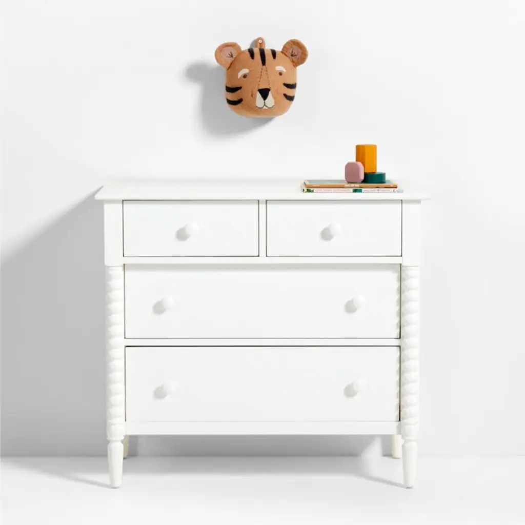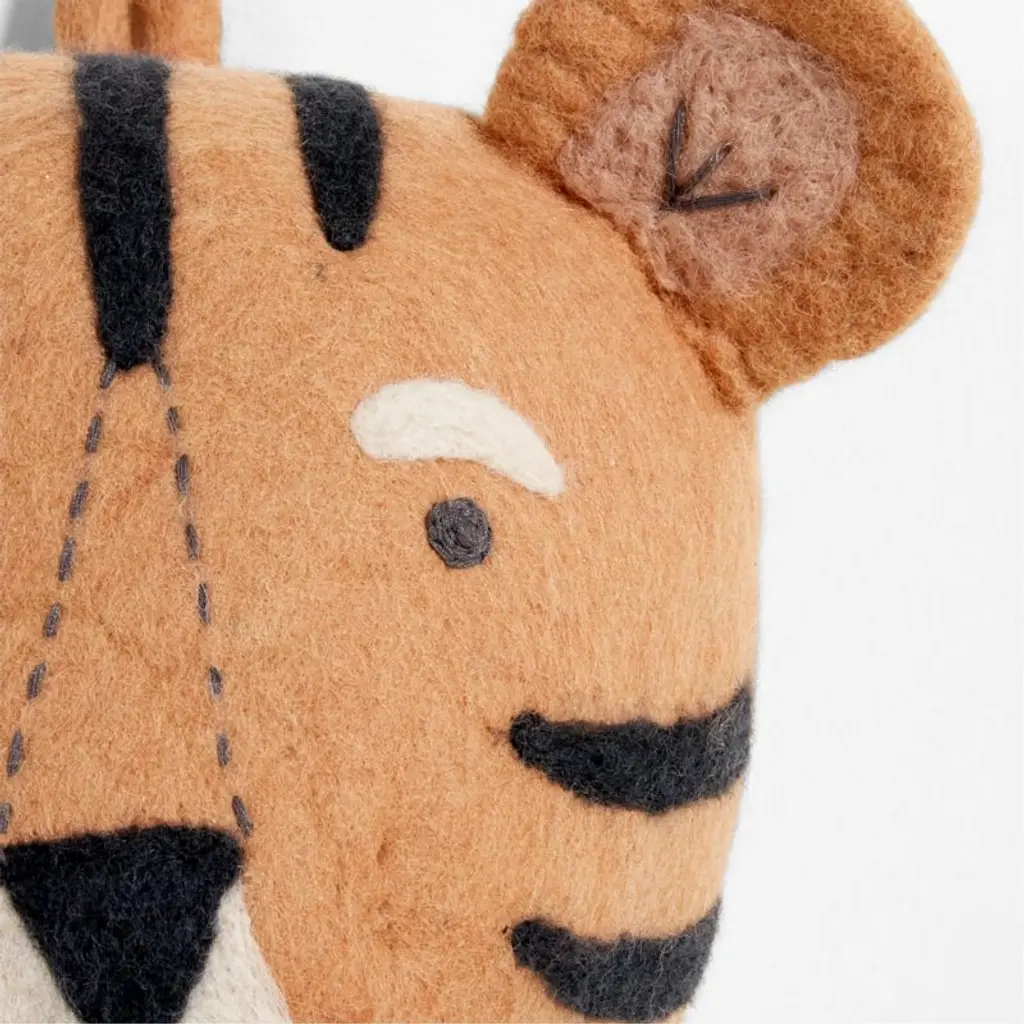 A friendly face makes this tiger a rawr-y cute finishing touch in the nursery, kid's room or playroom. Carefully handmade of felted wool, this sweet, striped pal keeps a close eye on your little cub with fuzzy round ears and delicate embroidered features.