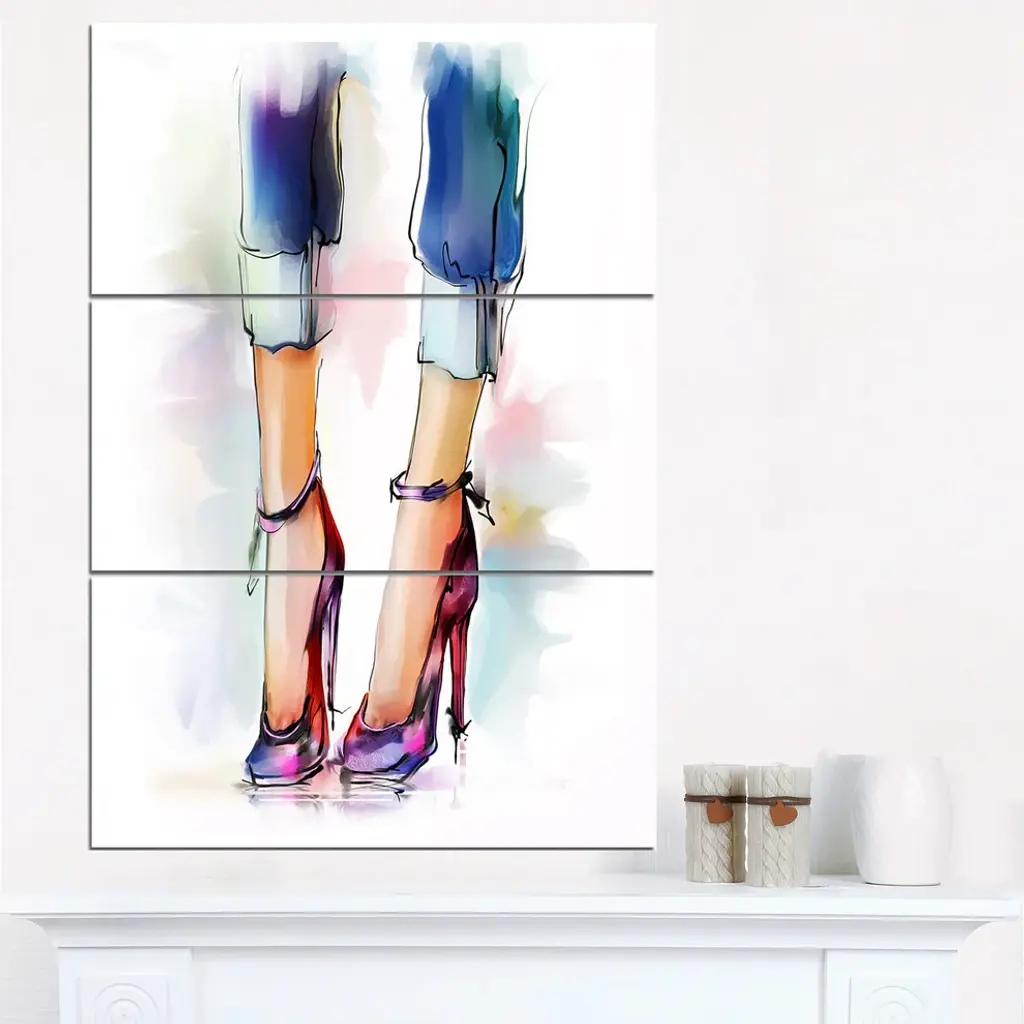 "Female Legs And Shoes" Digital Glossy Metal Wall Art, 3 Panels, 28"x36"