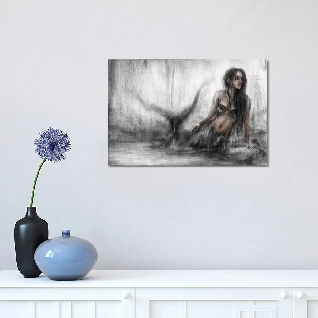 An ethereal, dreamlike artwork by Andrew Martin depicting a female figure as she seems to be suspended below the surface of the water. Watery turquoise shades provide a pleasing contrast with the model's auburn hair and ribbons of fabric trail around her. Printed onto smooth plexiglass this mesmeric piece is part of our ongoing collaboration with Cobra Art.Production time: 6-8 Weeks