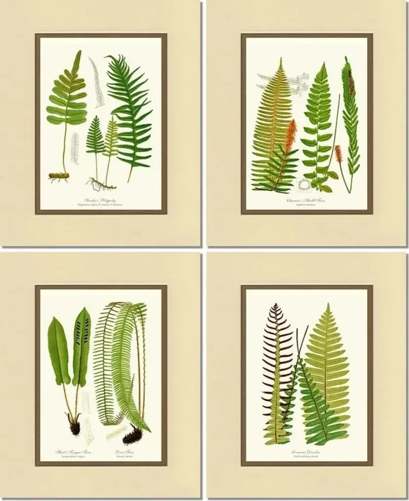 Vintage botanical fern art prints from turn of the century illustrations. Available in multiple sizes. Printed on quality archival paper with achival inks. Money Back Guarantee. All prints are sized to fit standard mat and frame sizes.