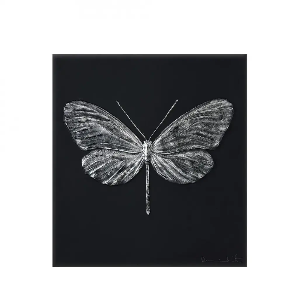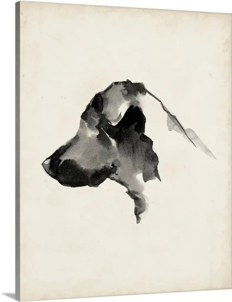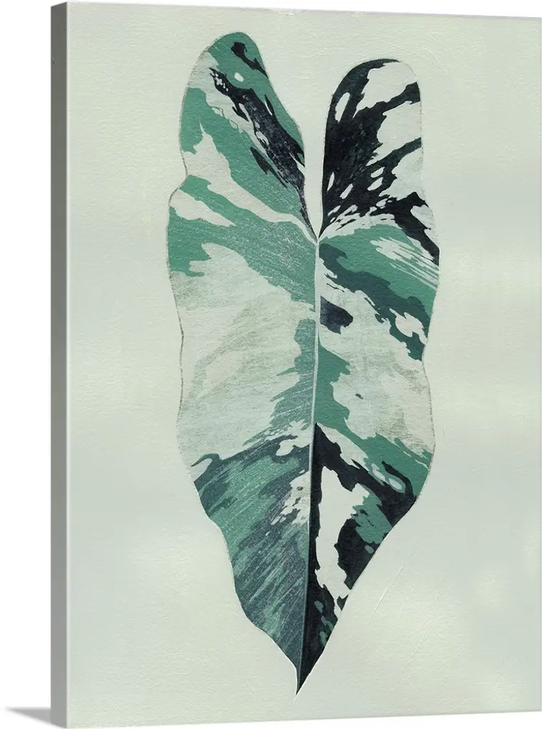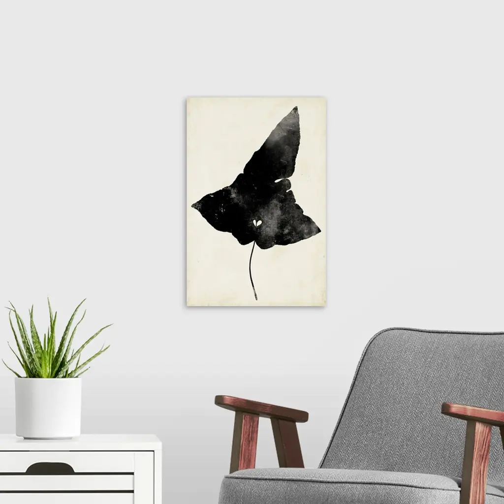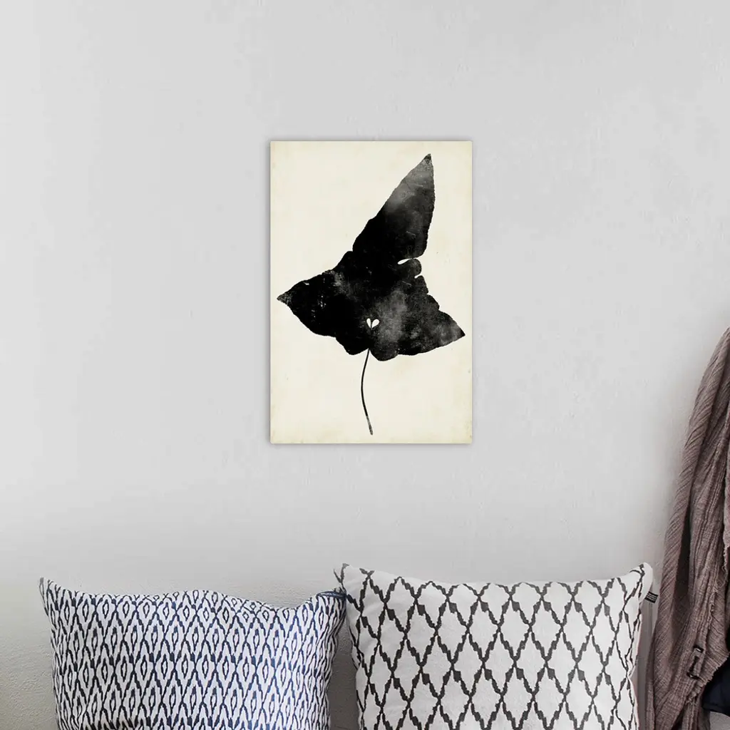 This contemporary artwork features a silhouette of a fern leaf over a neutral background with distressed textures throughout.