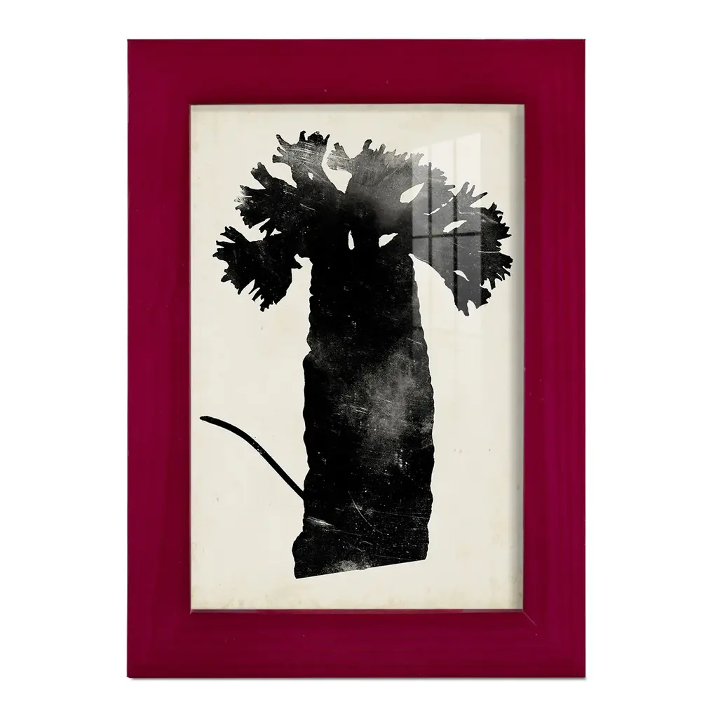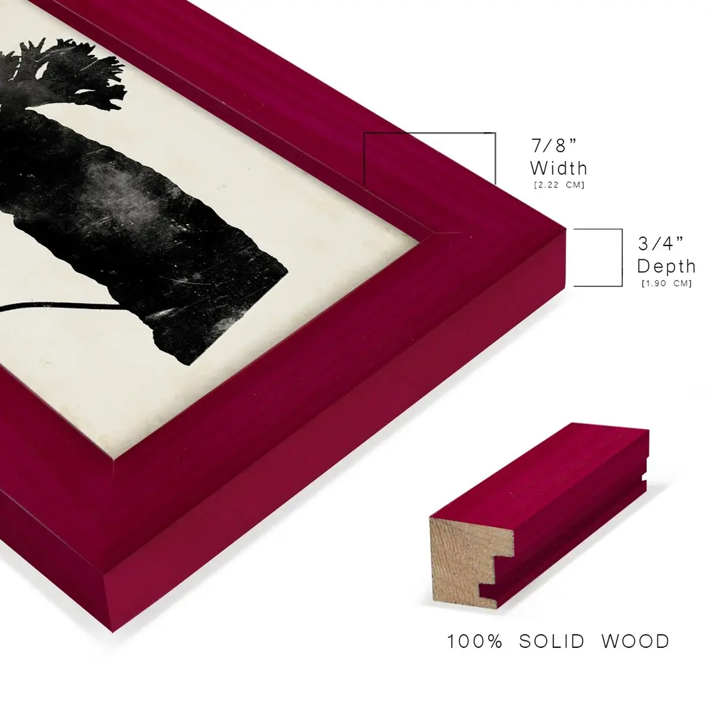 Fern Silhouette II -EZ SWITCH Framed Print w/glass-Cherry Red A delightful, framed print. Featuring a solid wood frame with real wood glass. This premium print is giclee quality. In addition, every frame features a removable back and table top stand. This allows you to change your art in the future or to just stand the art on a table for a new look. We are sure you'll enjoy our new series of EZ SWITCH Framed Art. Solid Wood Frame Real Glass Removable / Replaceable Art Built in Tabletop Stand Sizes range from 4x6 up to 12x15 - buy just one or pair them up as sets as you see fit.