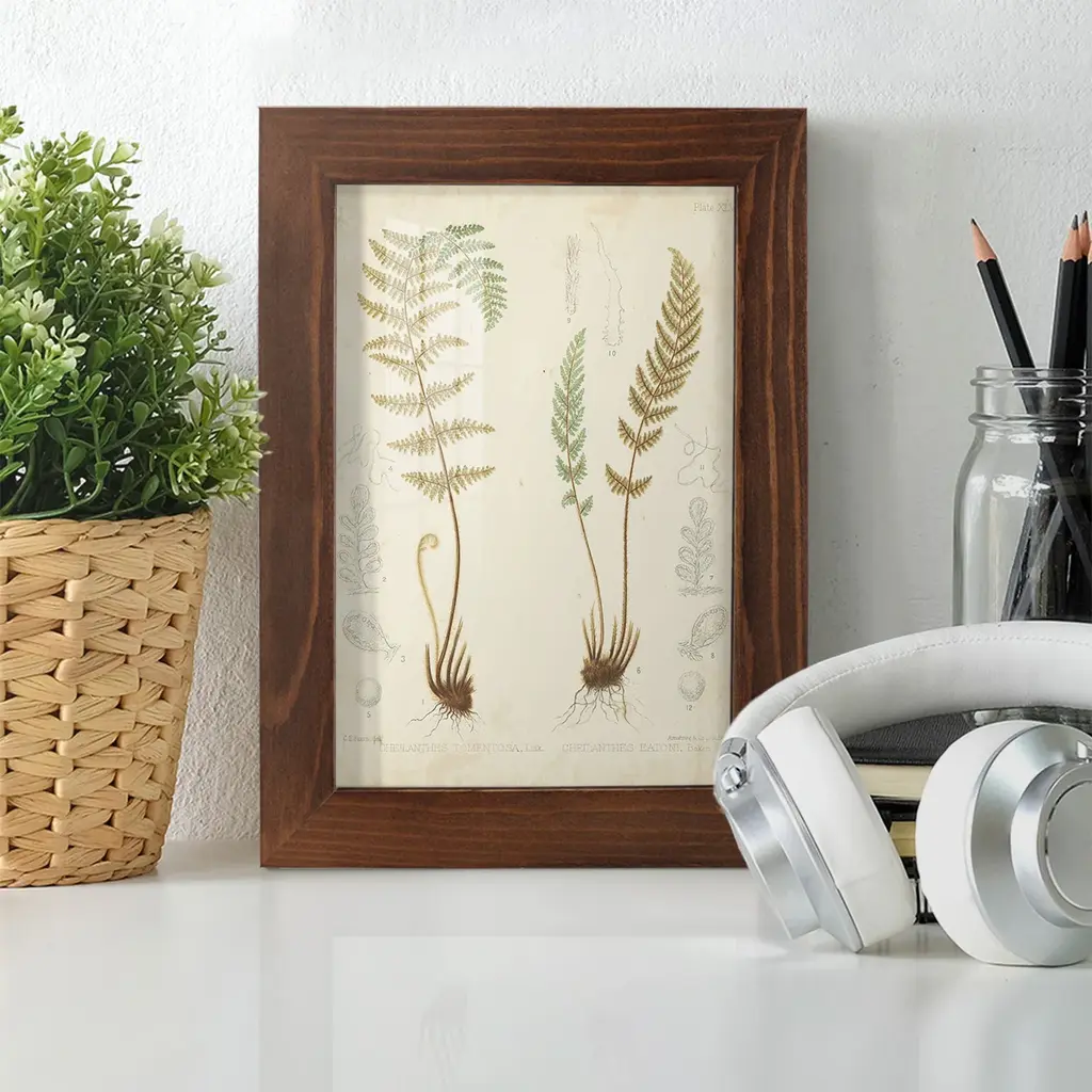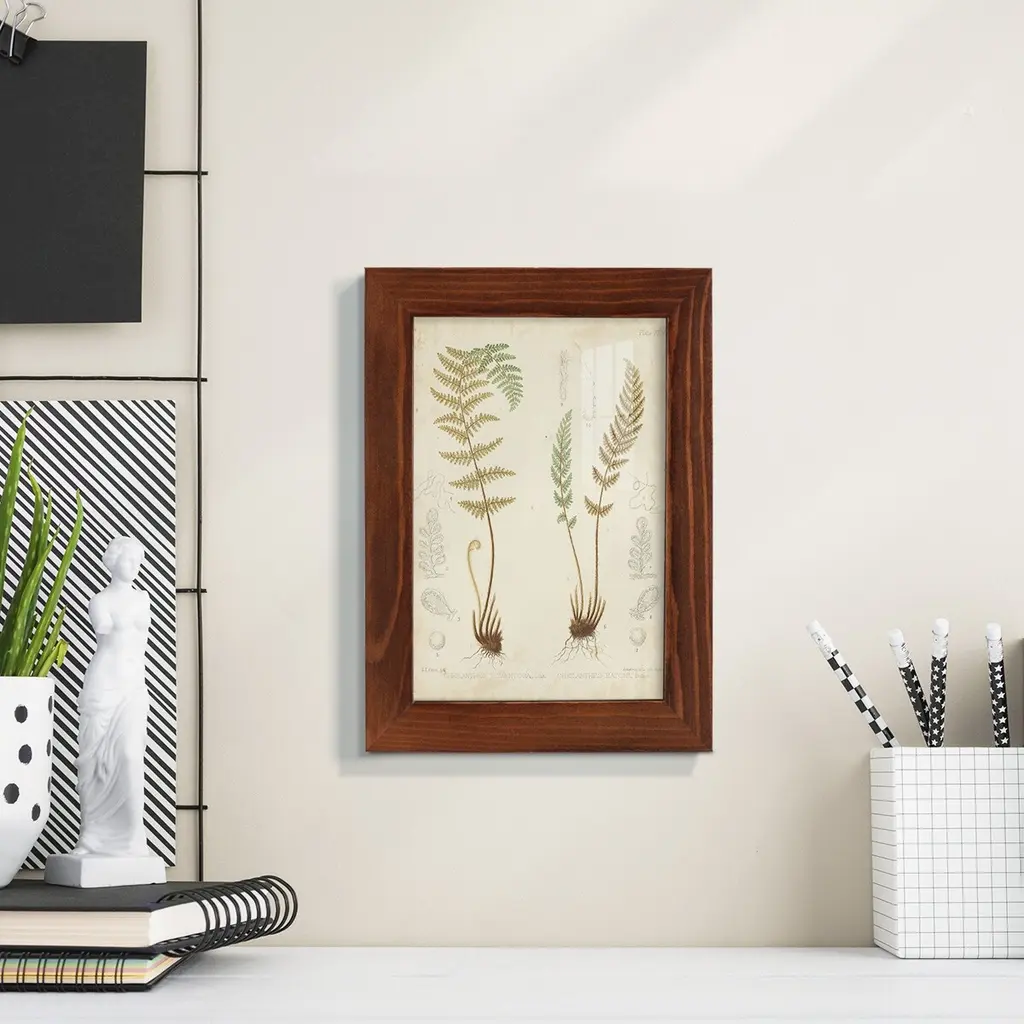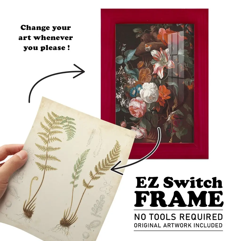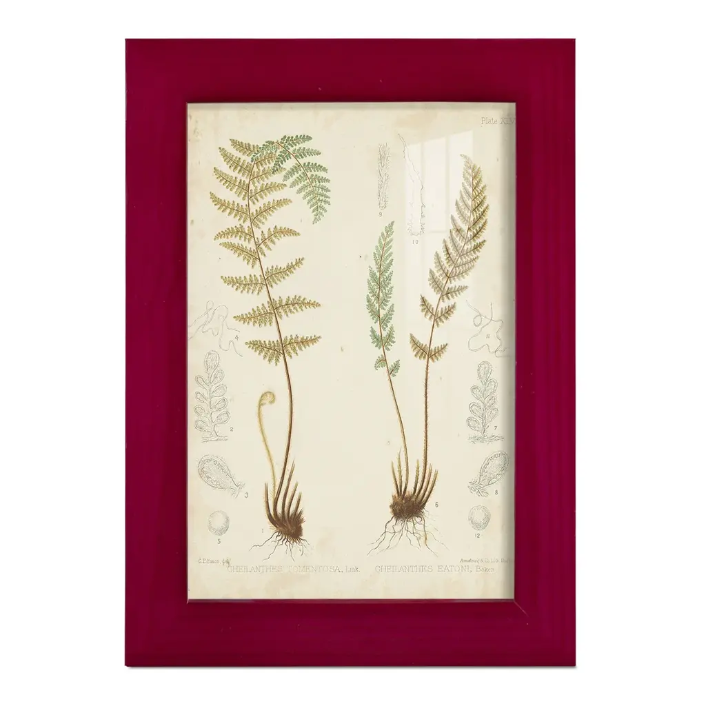 Fern Study I -EZ SWITCH Framed Print w/glass-Cherry Red A delightful, framed print. Featuring a solid wood frame with real wood glass. This premium print is giclee quality. In addition, every frame features a removable back and table top stand. This allows you to change your art in the future or to just stand the art on a table for a new look. We are sure you'll enjoy our new series of EZ SWITCH Framed Art. Solid Wood Frame Real Glass Removable / Replaceable Art Built in Tabletop Stand Sizes range from 4x6 up to 12x15 - buy just one or pair them up as sets as you see fit.