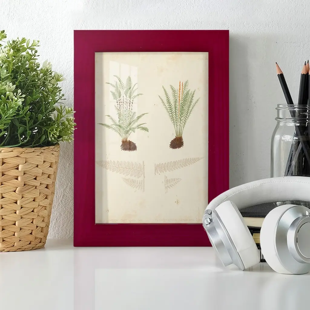 Fern Study III -EZ SWITCH Framed Print w/glass-Cherry Red A delightful, framed print. Featuring a solid wood frame with real wood glass. This premium print is giclee quality. In addition, every frame features a removable back and table top stand. This allows you to change your art in the future or to just stand the art on a table for a new look. We are sure you'll enjoy our new series of EZ SWITCH Framed Art. Solid Wood Frame Real Glass Removable / Replaceable Art Built in Tabletop Stand Sizes range from 4x6 up to 12x15 - buy just one or pair them up as sets as you see fit.