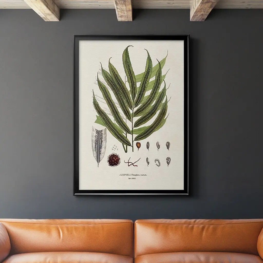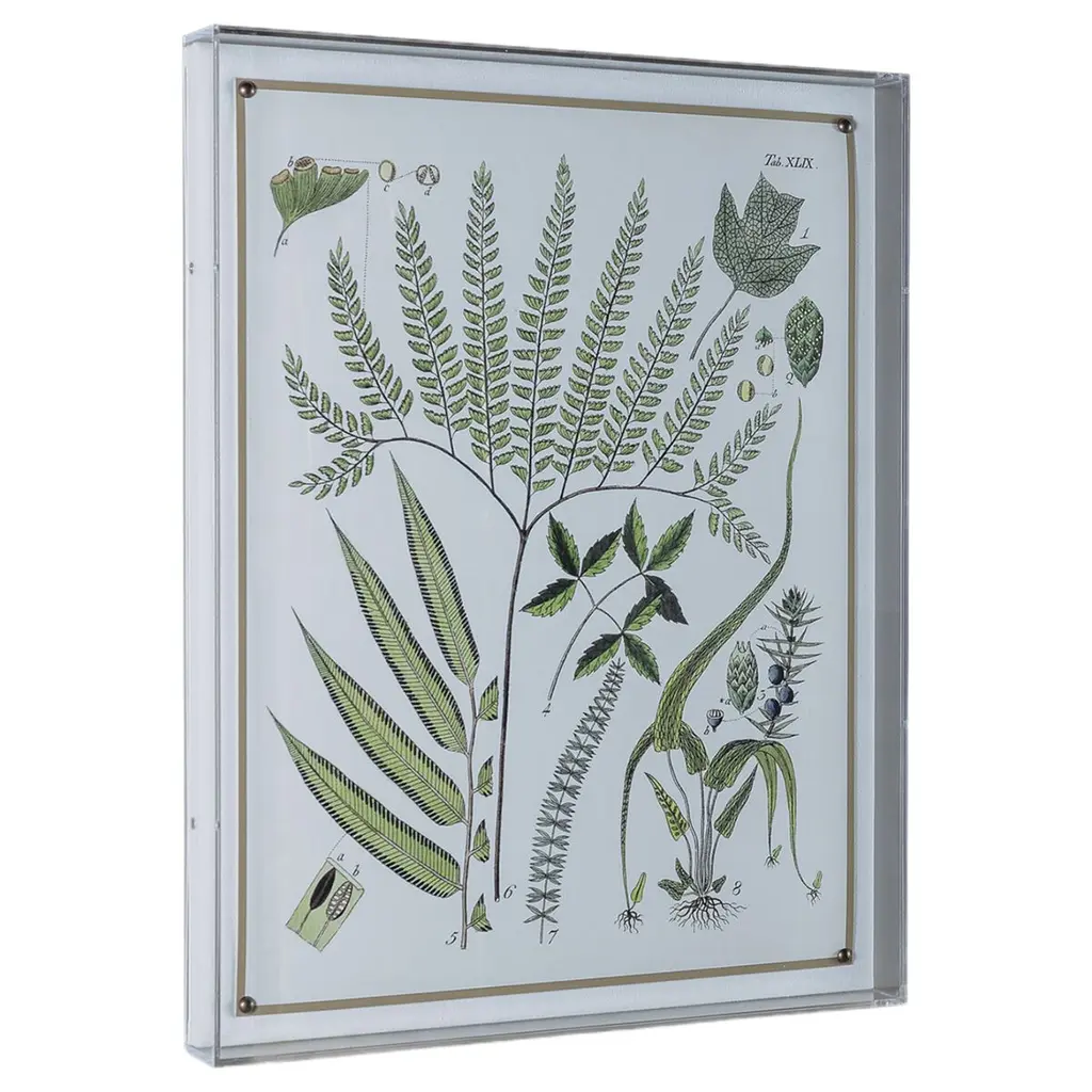 The artwork features a giclee print mounted under a deep lucite shadow box. Attached to a linen wrapped interior panel, the artwork is finished with brass nail head in each corner. Each panel is sold individually. Artwork may be hung individually or as a set with mates. Measurements: 26"H x 20"W x 2.5"D. Materials: acrylic frame, interior board mount, giclee paper print.