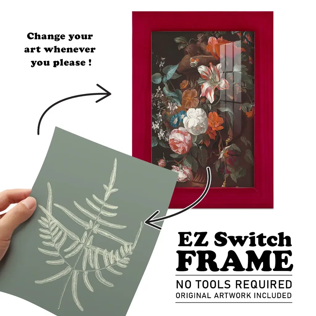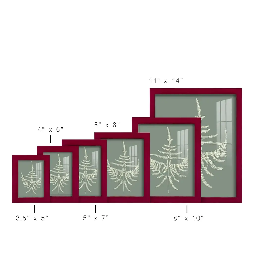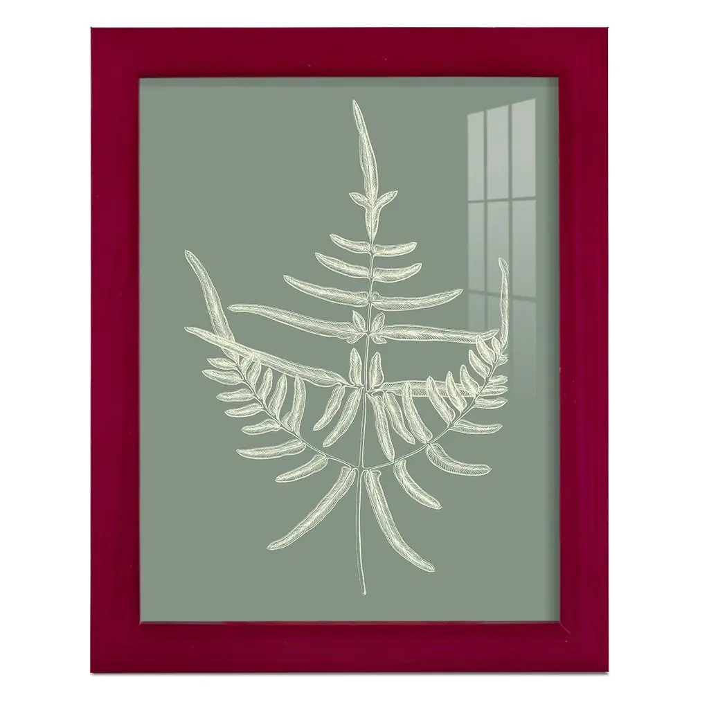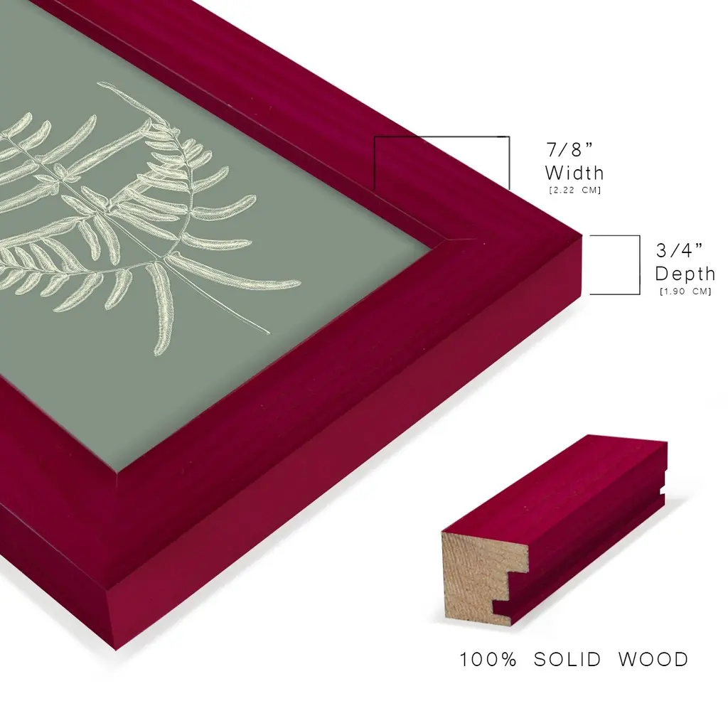 Ferns on Sage I -EZ SWITCH Framed Print w/glass-Cherry Red A delightful, framed print. Featuring a solid wood frame with real wood glass. This premium print is giclee quality. In addition, every frame features a removable back and table top stand. This allows you to change your art in the future or to just stand the art on a table for a new look. We are sure you'll enjoy our new series of EZ SWITCH Framed Art. Solid Wood Frame Real Glass Removable / Replaceable Art Built in Tabletop Stand Sizes range from 4x6 up to 12x15 - buy just one or pair them up as sets as you see fit.