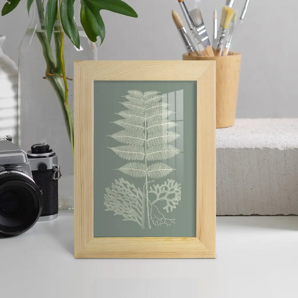 Ferns On Sage V -Framed Print W/glass-Cherry Red - 4X6 - Blue