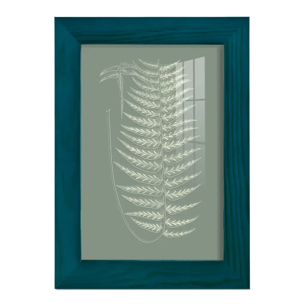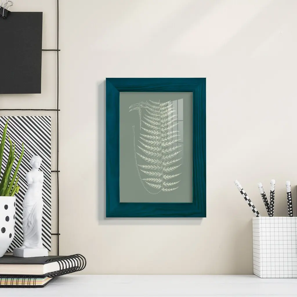 Ferns On Sage Viii -Framed Print W/glass-Cherry Red - 12x15 - Blue