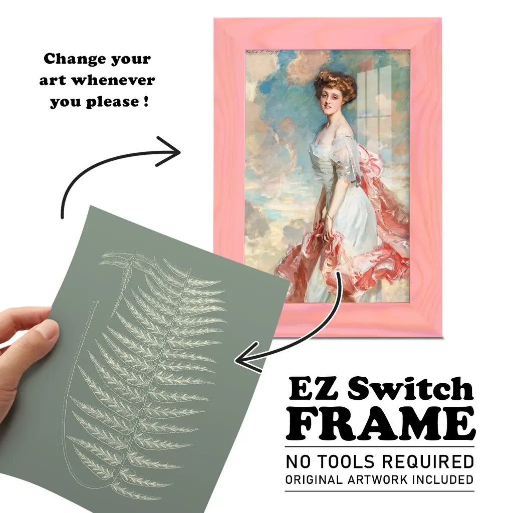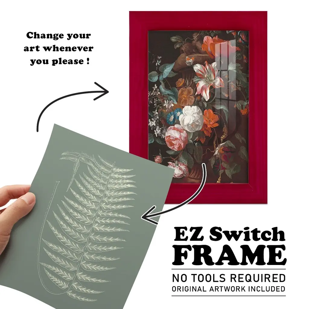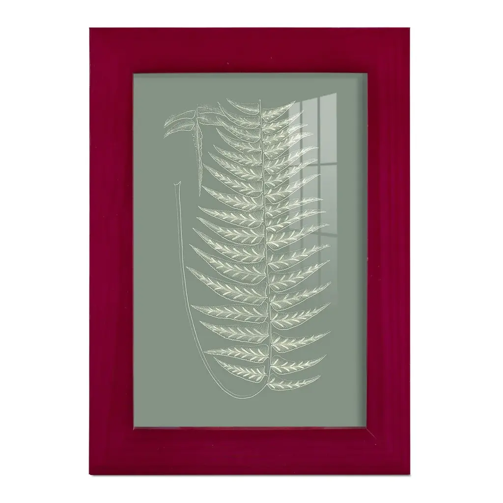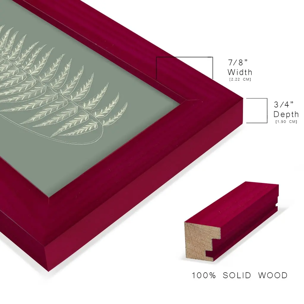 Ferns on Sage VIII -EZ SWITCH Framed Print w/glass-Cherry Red A delightful, framed print. Featuring a solid wood frame with real wood glass. This premium print is giclee quality. In addition, every frame features a removable back and table top stand. This allows you to change your art in the future or to just stand the art on a table for a new look. We are sure you'll enjoy our new series of EZ SWITCH Framed Art. Solid Wood Frame Real Glass Removable / Replaceable Art Built in Tabletop Stand Sizes range from 4x6 up to 12x15 - buy just one or pair them up as sets as you see fit.