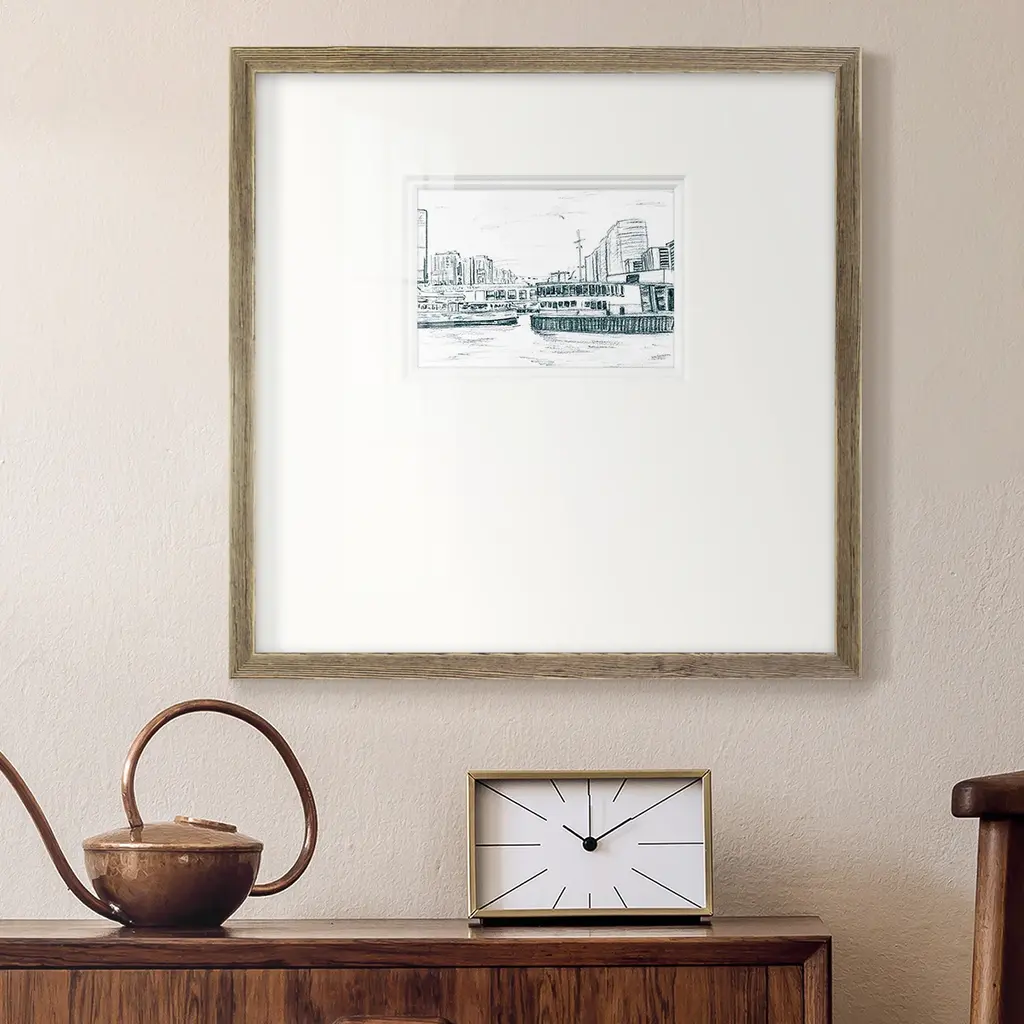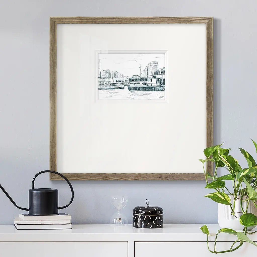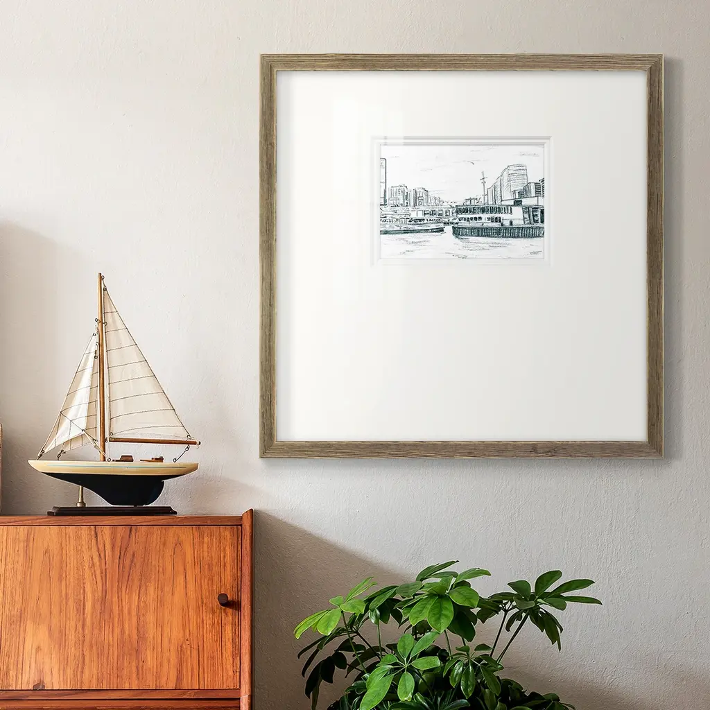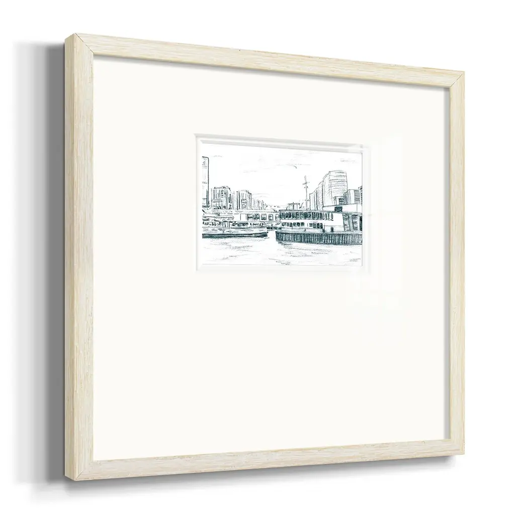 Ferryboats IIIPremium Framed Print A framed cold pressed paper print featuring superior double matting and quality frame. 2 SIZES AVAILABLE 16''X16''' - Overall Size 20''X20''' - Overall Size Each piece is made to order. Each piece comes with hanging hardware. Made in the USA Ready to Hang Giclee Paper Print Plexiglass Beveled Matt Board Double Matte Board
