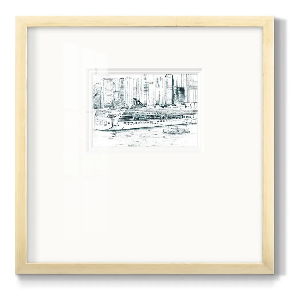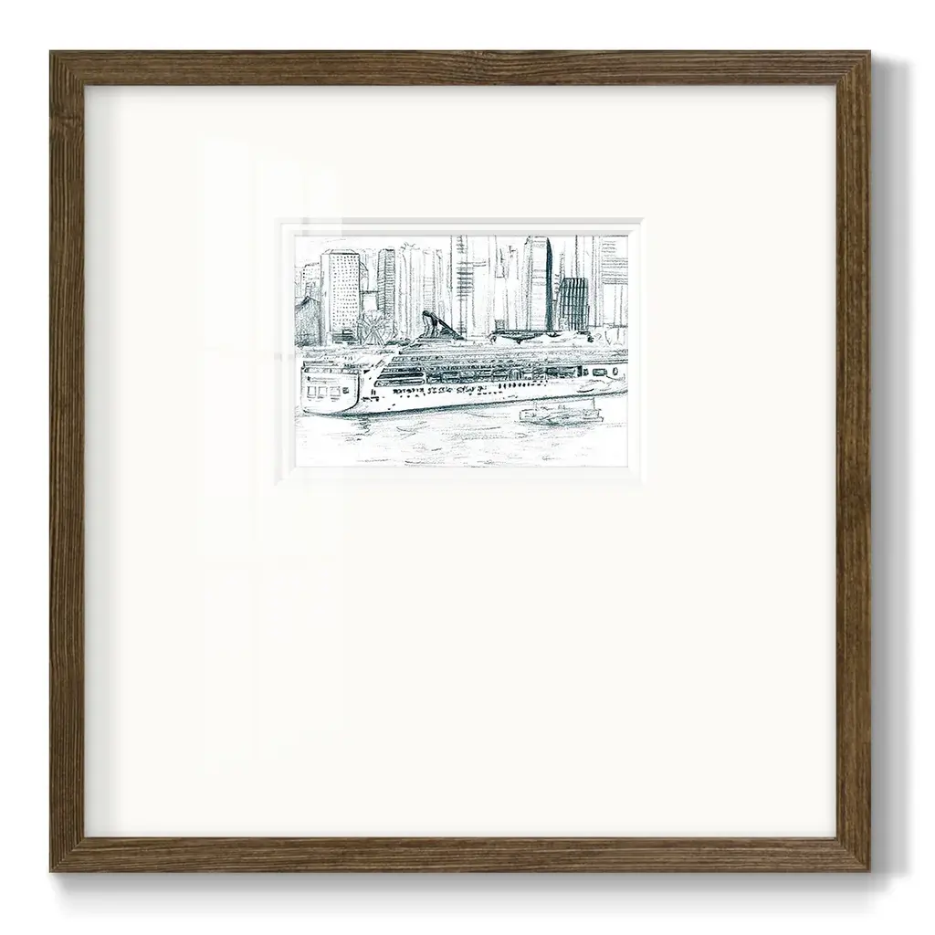 Ferryboats IIPremium Framed Print A framed cold pressed paper print featuring superior double matting and quality frame. 2 SIZES AVAILABLE 16''X16''' - Overall Size 20''X20''' - Overall Size Each piece is made to order. Each piece comes with hanging hardware. Made in the USA Ready to Hang Giclee Paper Print Plexiglass Beveled Matt Board Double Matte Board