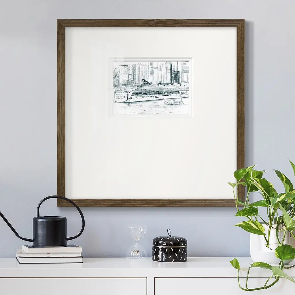 Ferryboats IIPremium Framed Print A framed cold pressed paper print featuring superior double matting and quality frame. 2 SIZES AVAILABLE 16''X16''' - Overall Size 20''X20''' - Overall Size Each piece is made to order. Each piece comes with hanging hardware. Made in the USA Ready to Hang Giclee Paper Print Plexiglass Beveled Matt Board Double Matte Board