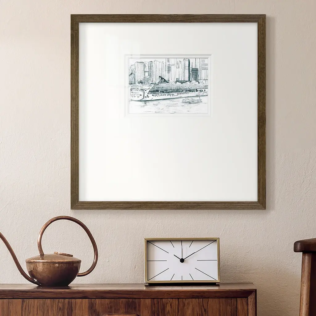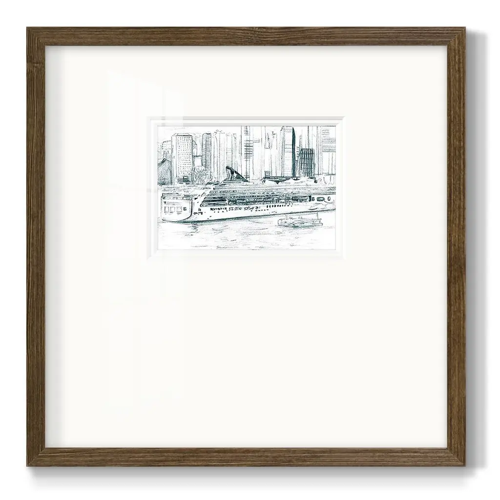 Ferryboats IIPremium Framed Print A framed cold pressed paper print featuring superior double matting and quality frame. 2 SIZES AVAILABLE 16''X16''' - Overall Size 20''X20''' - Overall Size Each piece is made to order. Each piece comes with hanging hardware. Made in the USA Ready to Hang Giclee Paper Print Plexiglass Beveled Matt Board Double Matte Board