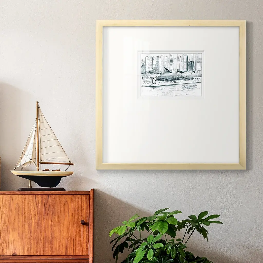 Ferryboats IIPremium Framed Print A framed cold pressed paper print featuring superior double matting and quality frame. 2 SIZES AVAILABLE 16''X16''' - Overall Size 20''X20''' - Overall Size Each piece is made to order. Each piece comes with hanging hardware. Made in the USA Ready to Hang Giclee Paper Print Plexiglass Beveled Matt Board Double Matte Board