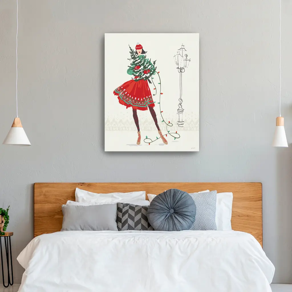 Add a playful touch to your winter decor with this festive canvas artwork showcasing cozy fashion and holiday charm. Its lively composition and nostalgic mood make it a standout piece for seasonal styling. Our Gallery Wrap Canvas Prints are proudly assembled with high quality materials in California, USA. Each piece is printed on a thick, archival grade canvas using Giclee technology. It is then hand-stretched by our experienced artisans over solid wood bars, which will not warp over time. The final product is a piece personally crafted for you to confidently display on your wall. Care and Assembly: Ensure that the location of your piece has little to no exposure to heat, sunlight, and moisture. Wipe clean, only if needed. Each piece includes hanging hardware to hang on your wall vertically.