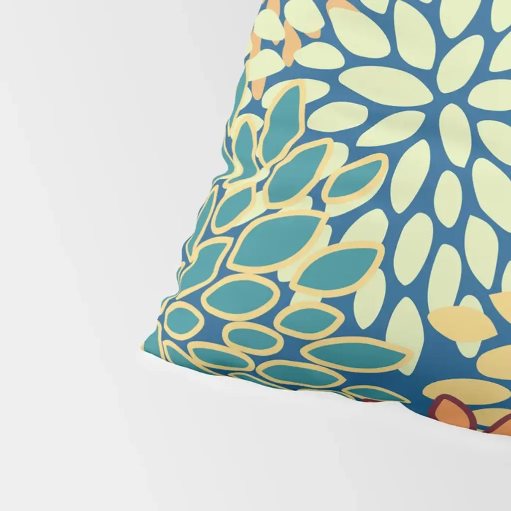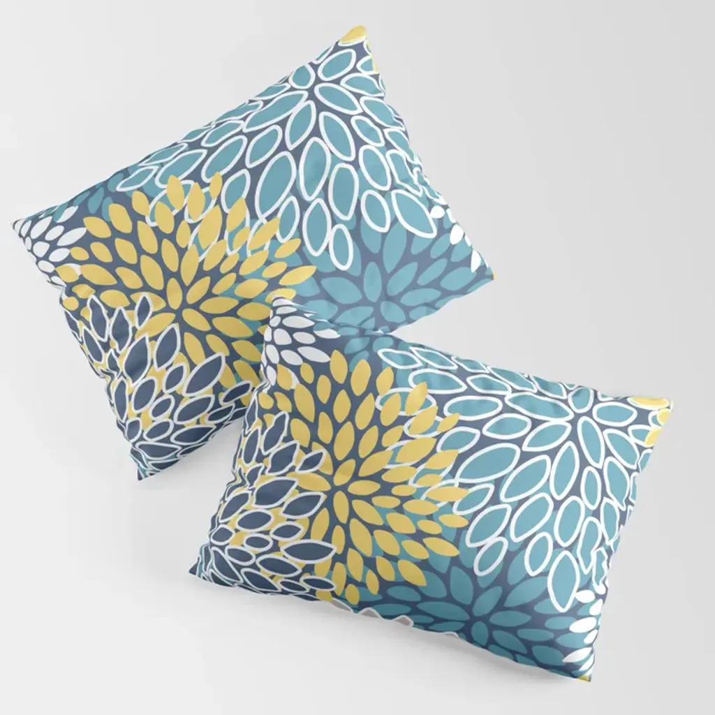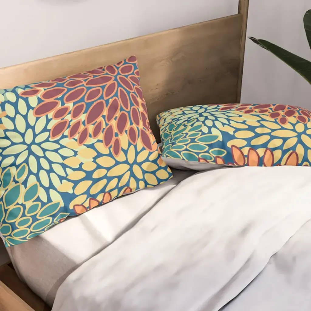 Festive Floral Prints, Red, Teal, Yellow, Orange, Colourful Prints Pillow Sham