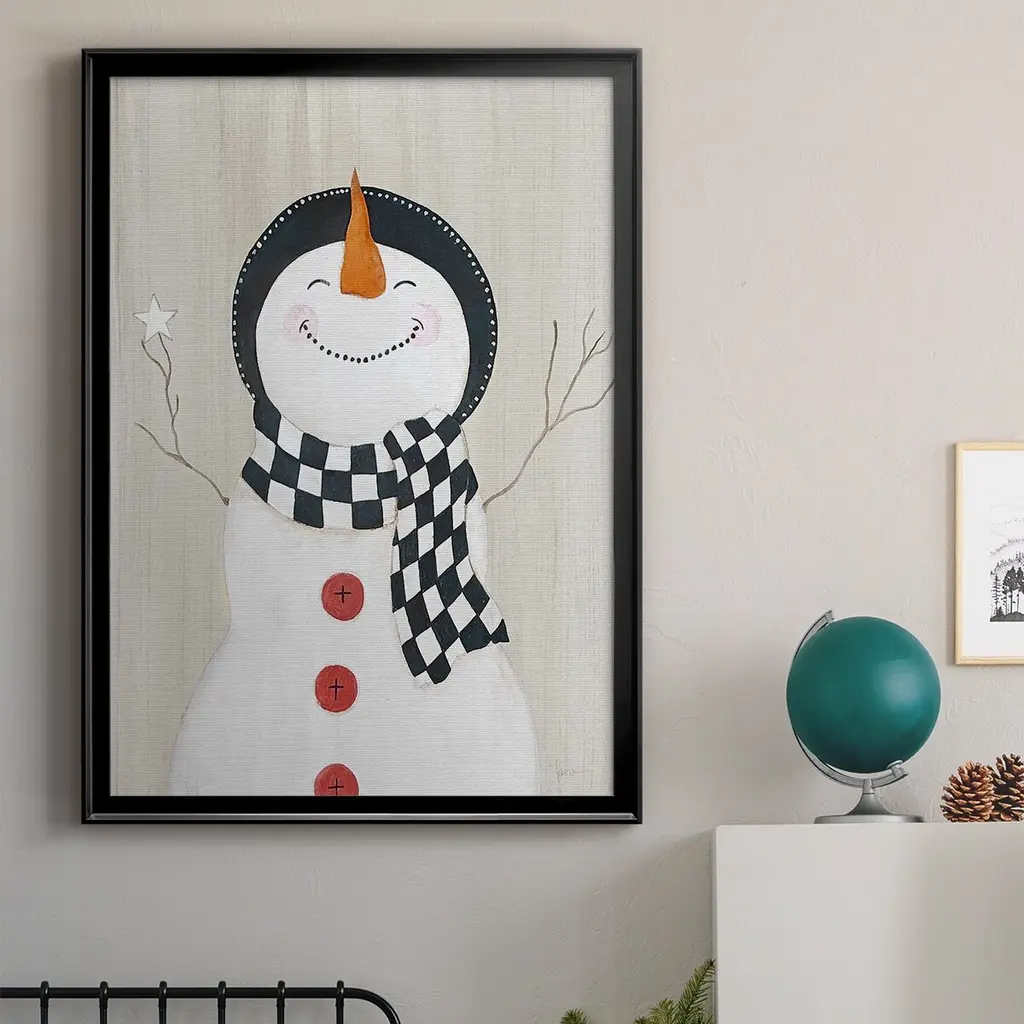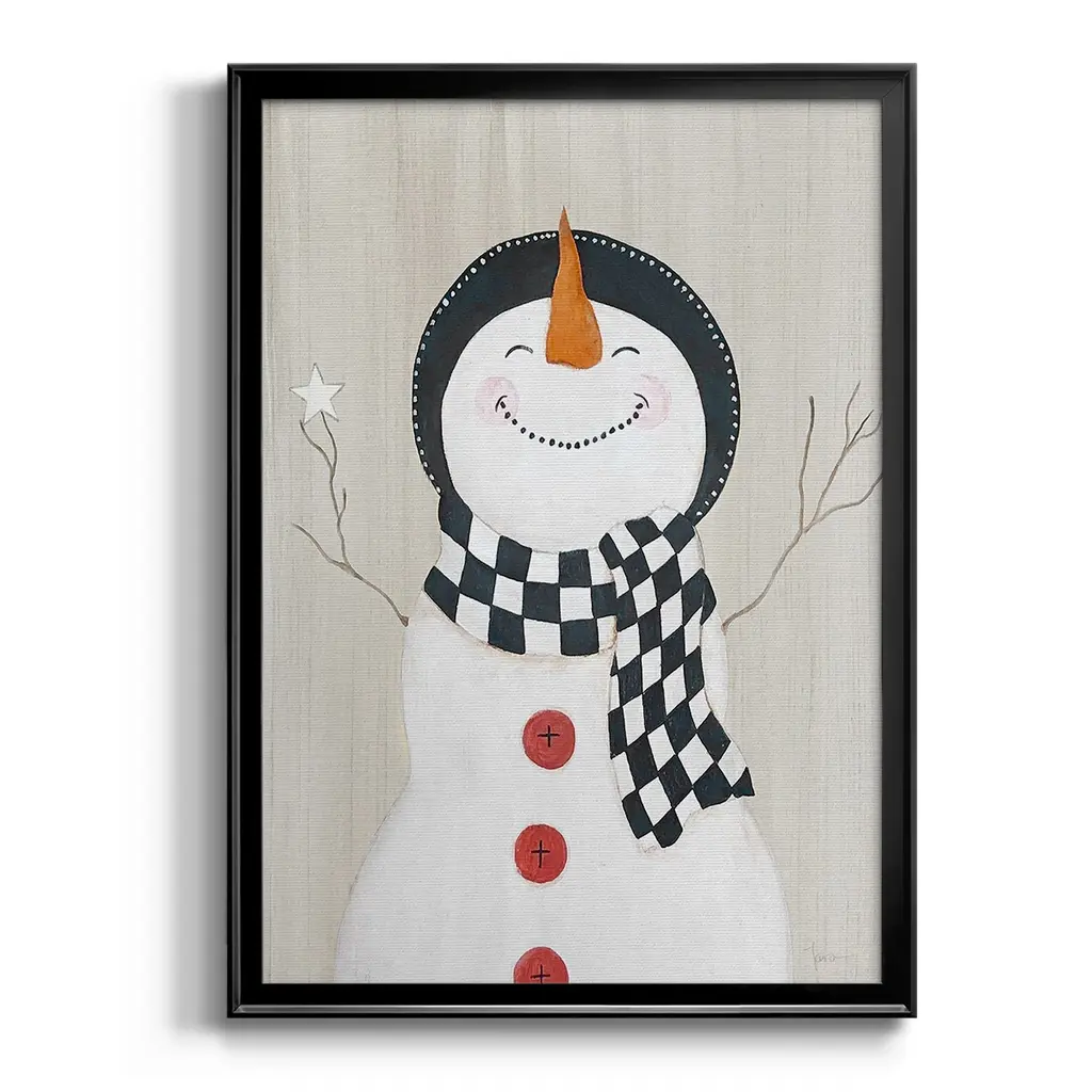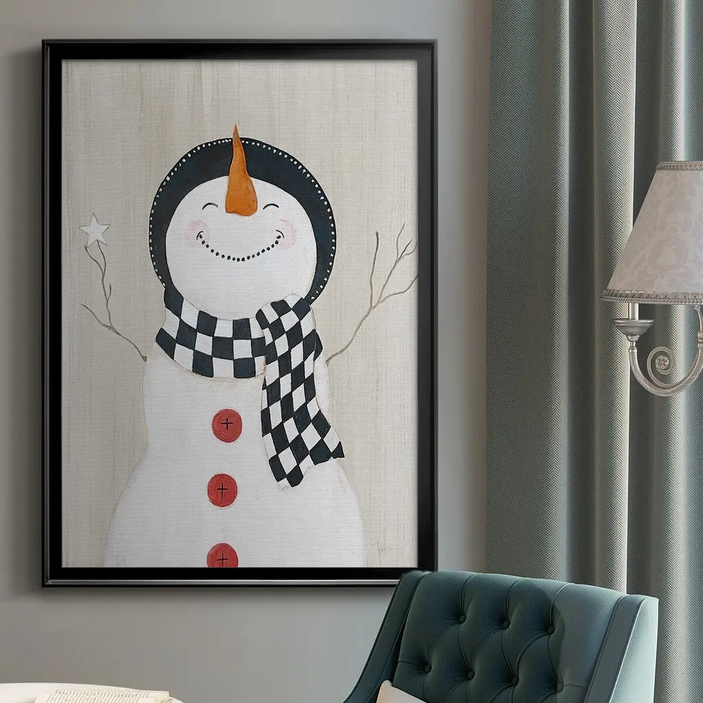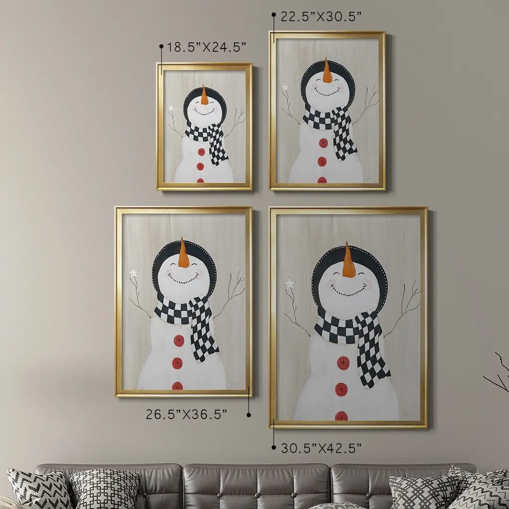 Festive Snowman II Premium Framed Print - Ready to Hang A Premium Framed Print created to last. Framed in distressed wood and available in an array of sizes and colors Featuring a beveled a solid wood stretcher bar, each piece comes ready to hand 4 SIZES AVAILABLE 30.5''X42.5'' - Overall Size 26.5'X36.5'' - Overall Size 22.5''x30.5'' - Overall Size 18.5''x24.5'' - Overall Size Each piece is made to order. Each piece comes with hanging hardware. Made in the USA Ready to Hang