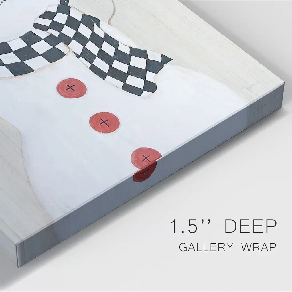 Festive Snowman II Premium Gallery Wrapped Canvas - Ready to Hang A premium hand stretched gallery wrapped canvas print created to last. Featuring a beveled a solid wood stretcher bar, each piece comes ready to hand 6 SIZES AVAILABLE 8''X12'' - Overall Size 12''X18'' - Overall Size 18''X27'' - Overall Size 24''x36'' - Overall Size 32''x48'' - Overall Size 40''x60'' - Overall Size Each piece is made to order. Built to Last Each piece comes ready to hang Solid wood stretcher Fade and Water resistant Made domestically