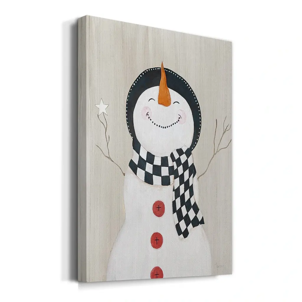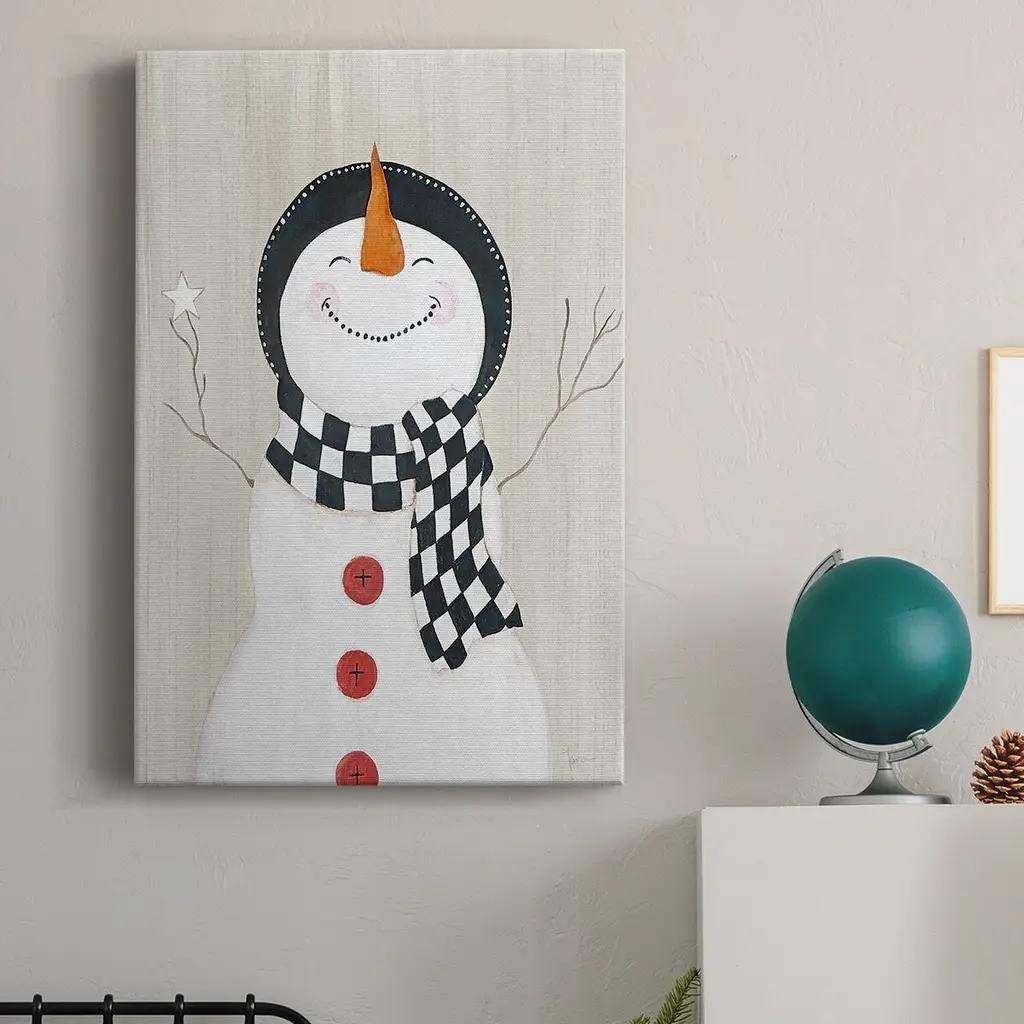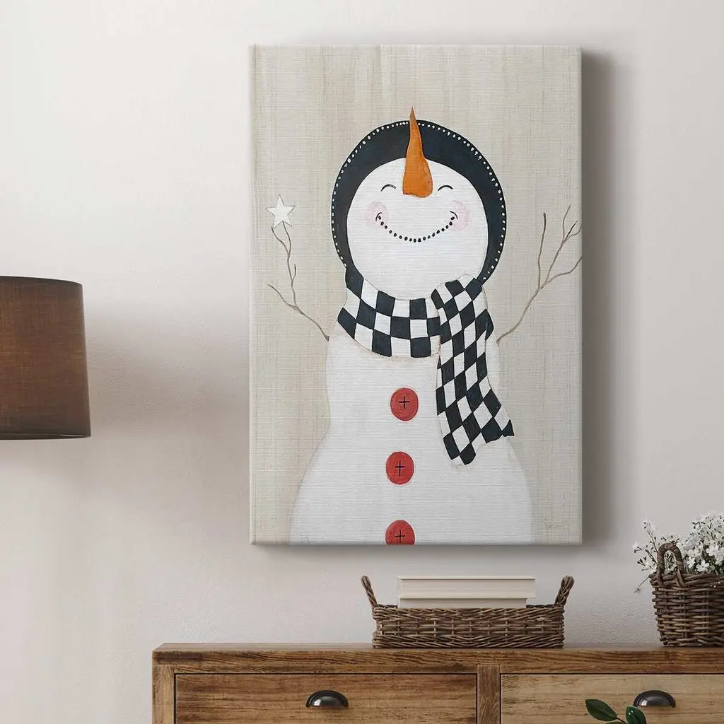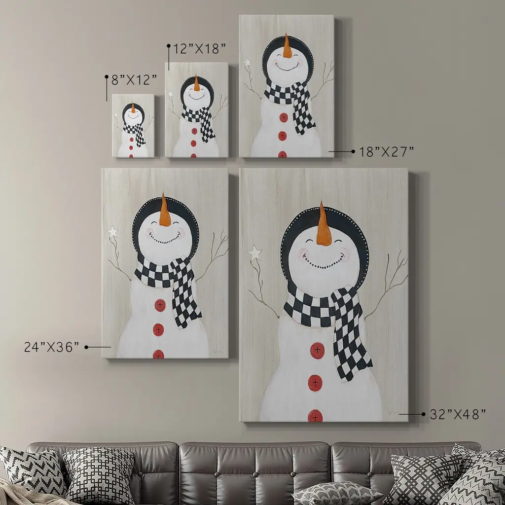 Festive Snowman II Premium Gallery Wrapped Canvas - Ready to Hang A premium hand stretched gallery wrapped canvas print created to last. Featuring a beveled a solid wood stretcher bar, each piece comes ready to hand 6 SIZES AVAILABLE 8''X12'' - Overall Size 12''X18'' - Overall Size 18''X27'' - Overall Size 24''x36'' - Overall Size 32''x48'' - Overall Size 40''x60'' - Overall Size Each piece is made to order. Built to Last Each piece comes ready to hang Solid wood stretcher Fade and Water resistant Made domestically