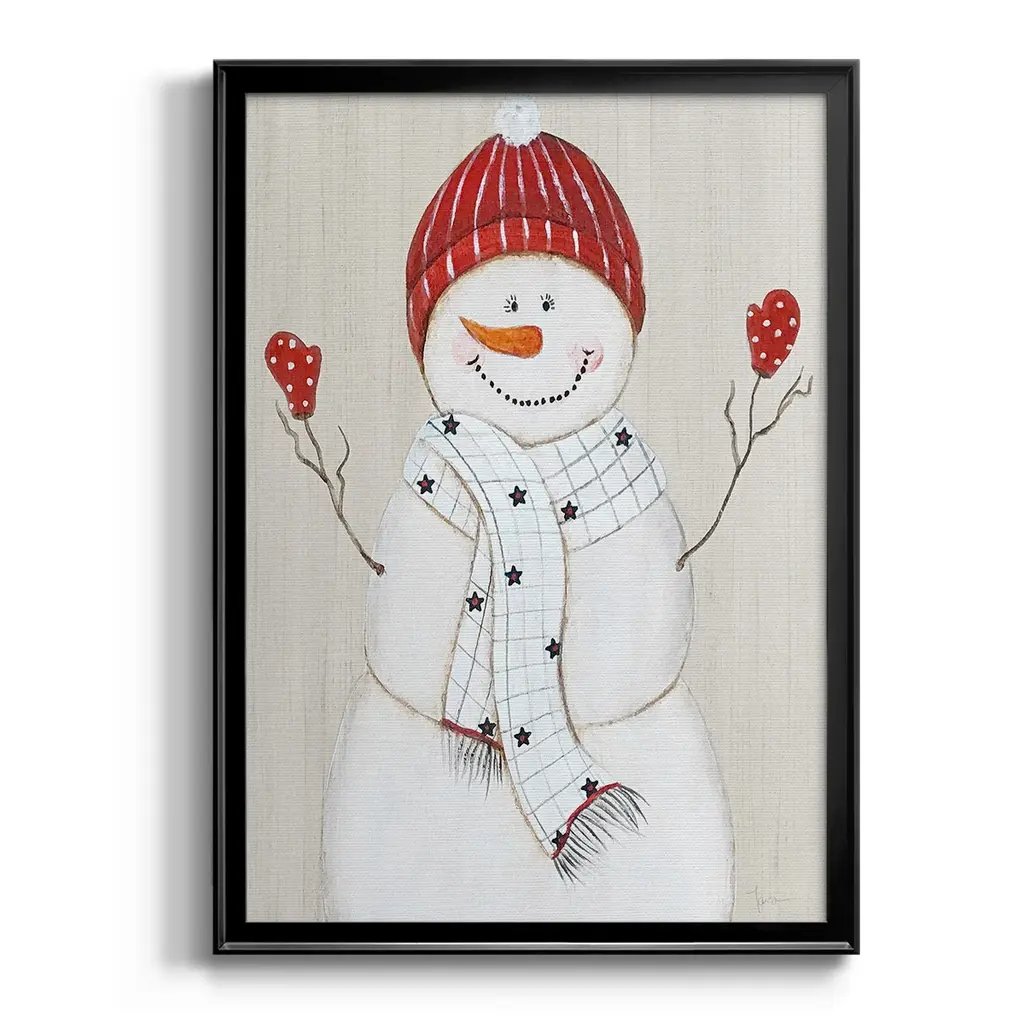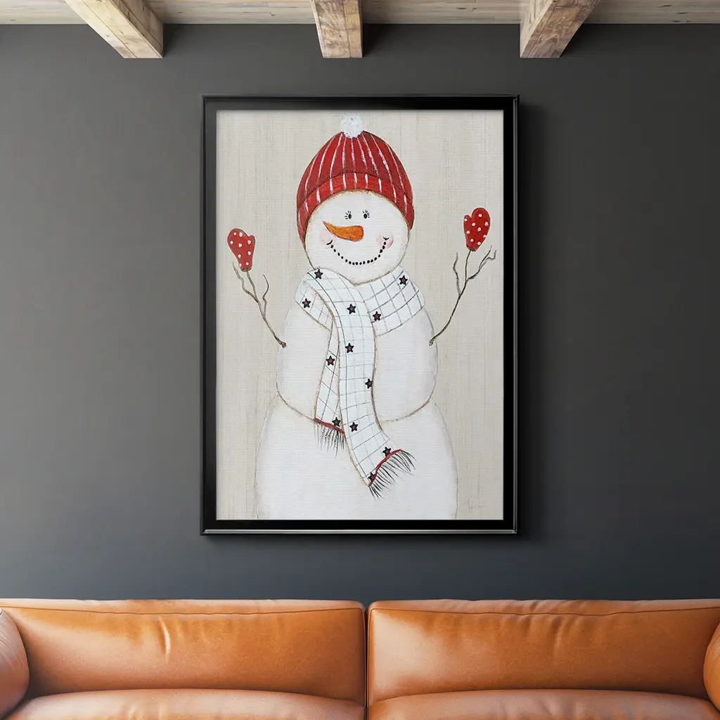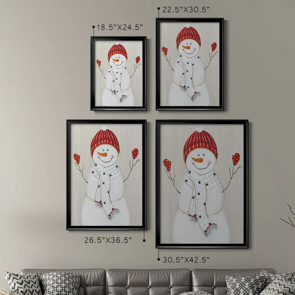 Festive Snowman III Premium Framed Print - Ready to Hang A Premium Framed Print created to last. Framed in distressed wood and available in an array of sizes and colors Featuring a beveled a solid wood stretcher bar, each piece comes ready to hand 4 SIZES AVAILABLE 30.5''X42.5'' - Overall Size 26.5'X36.5'' - Overall Size 22.5''x30.5'' - Overall Size 18.5''x24.5'' - Overall Size Each piece is made to order. Each piece comes with hanging hardware. Made in the USA Ready to Hang