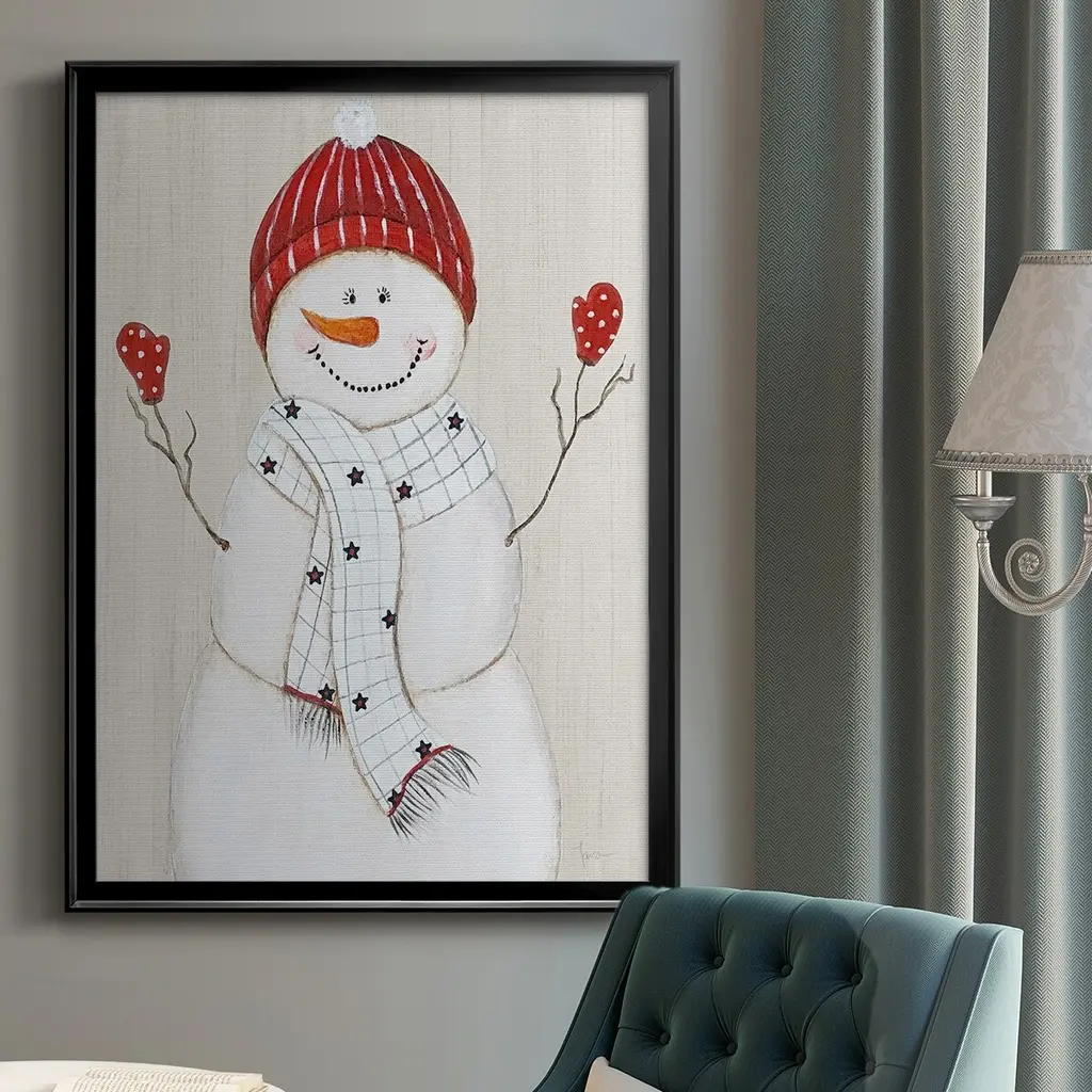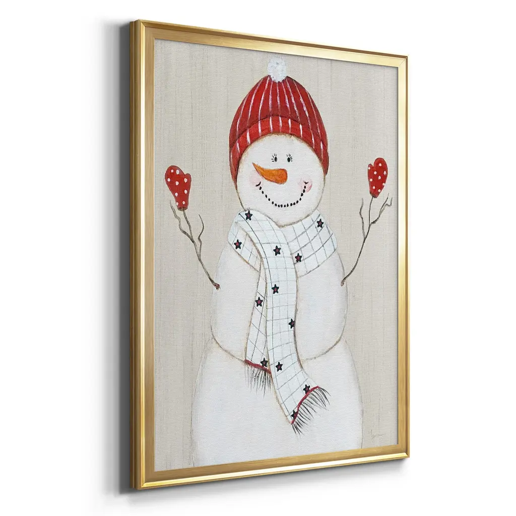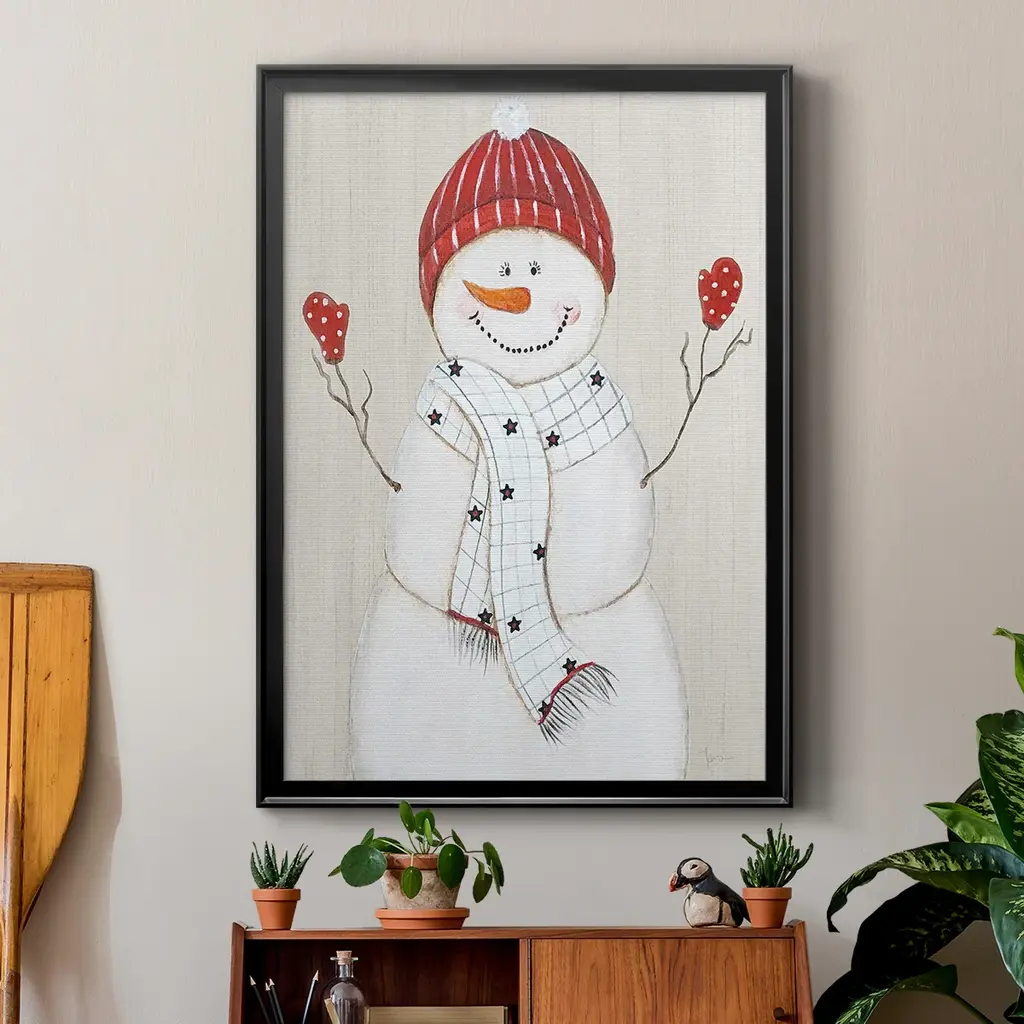 Festive Snowman III Premium Framed Print - Ready to Hang A Premium Framed Print created to last. Framed in distressed wood and available in an array of sizes and colors Featuring a beveled a solid wood stretcher bar, each piece comes ready to hand 4 SIZES AVAILABLE 30.5''X42.5'' - Overall Size 26.5'X36.5'' - Overall Size 22.5''x30.5'' - Overall Size 18.5''x24.5'' - Overall Size Each piece is made to order. Each piece comes with hanging hardware. Made in the USA Ready to Hang