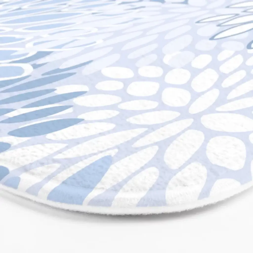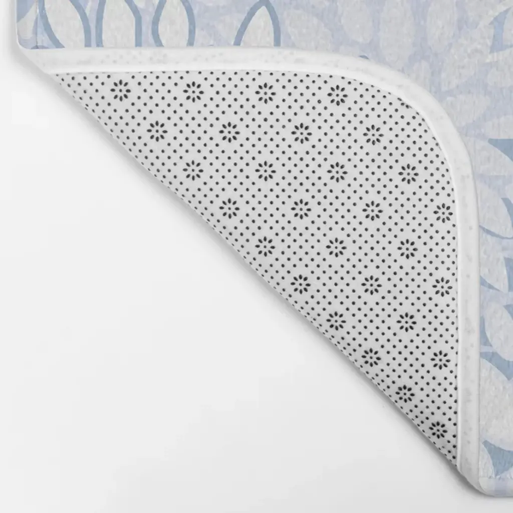 Festive, Winter, Floral Prints, Soft Blue And White Bath Mat
