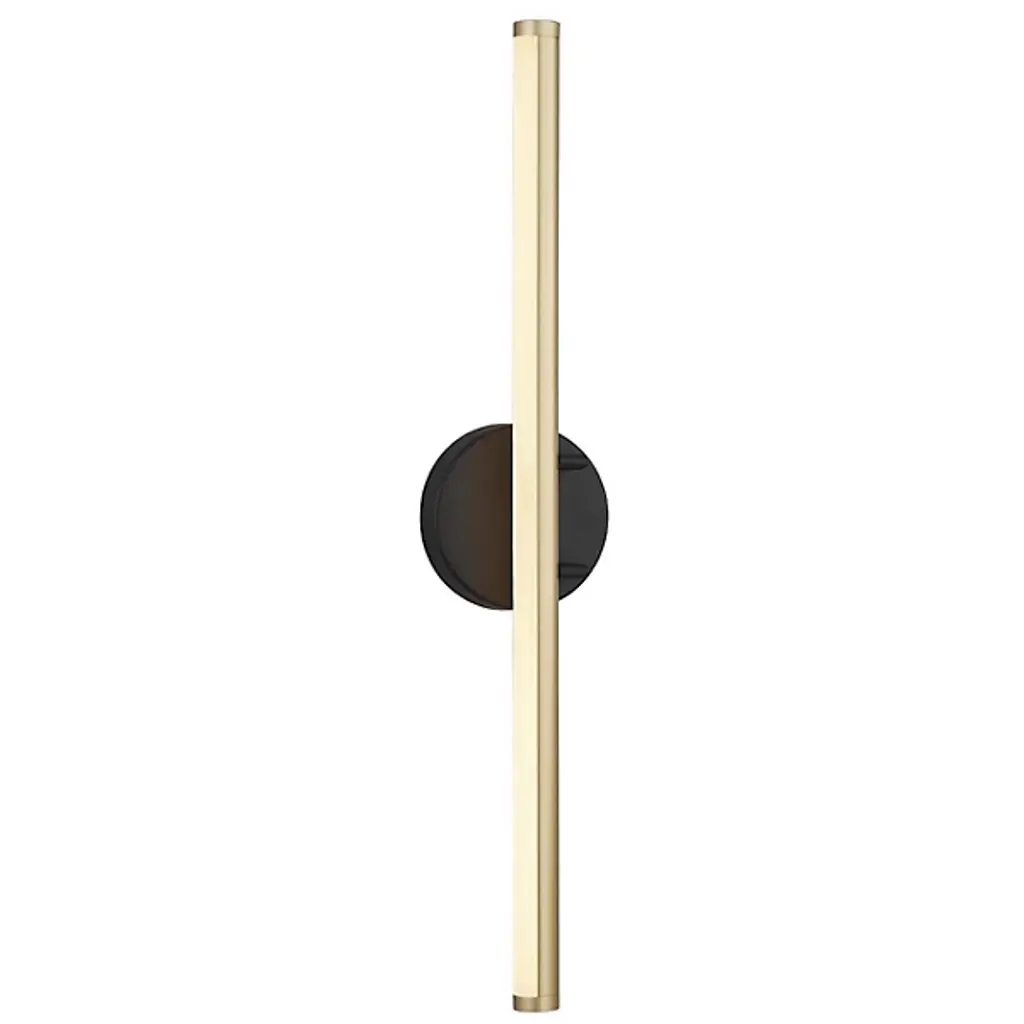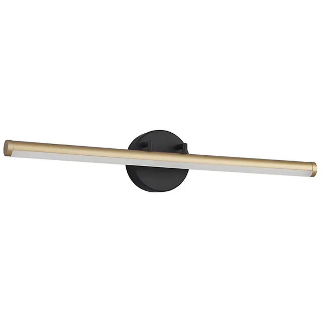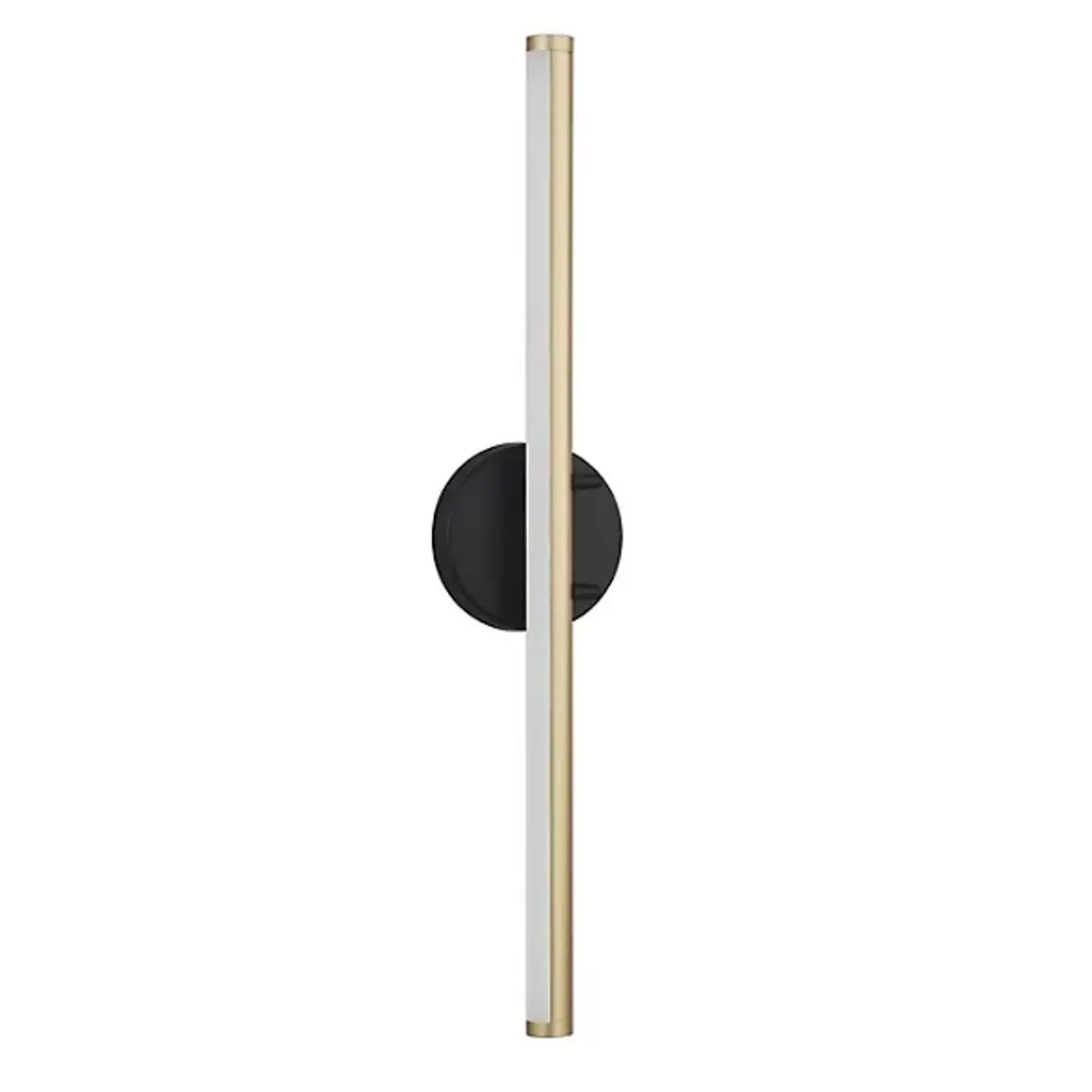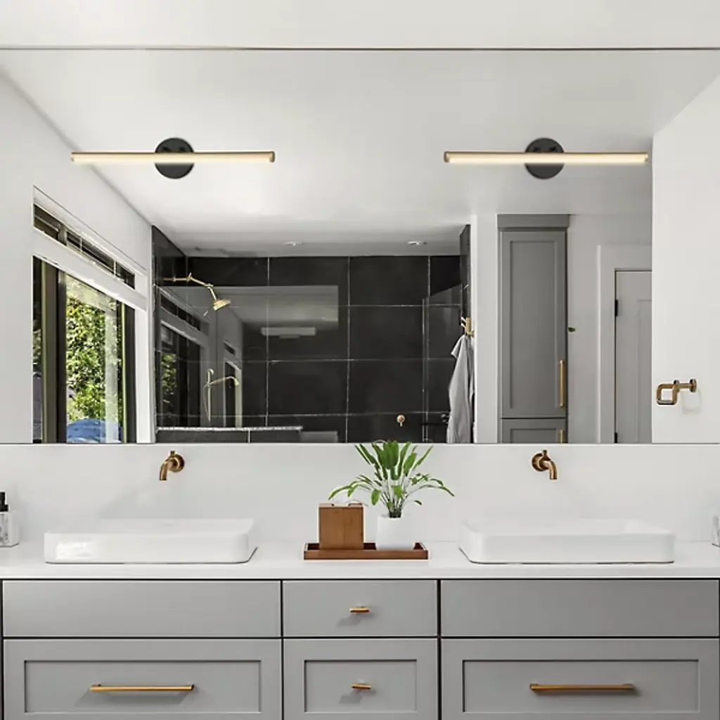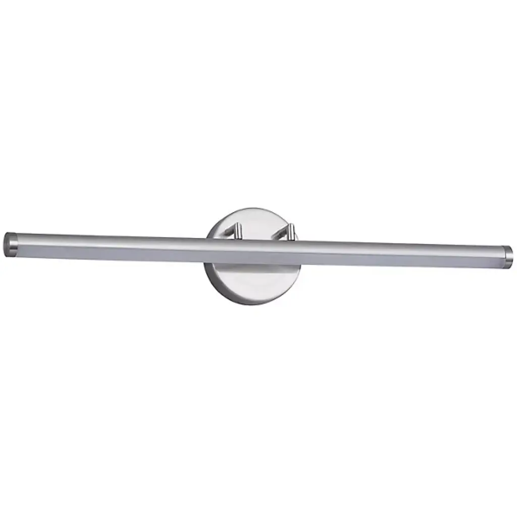 A smooth and slender bathroom lighting design. The Fianco LED Vanity Light by Justice Design Group brightens up an array of modern bathroom schemes with its simple, versatile form. It features a slim metal bar supported by a round wall plate. A lens in the bottom of the bar diffuses the light of the integrated LEDs and projects a bright and glare-free wash of light. This vanity light can be mounted vertically next to a bathroom mirror or horizontally above.