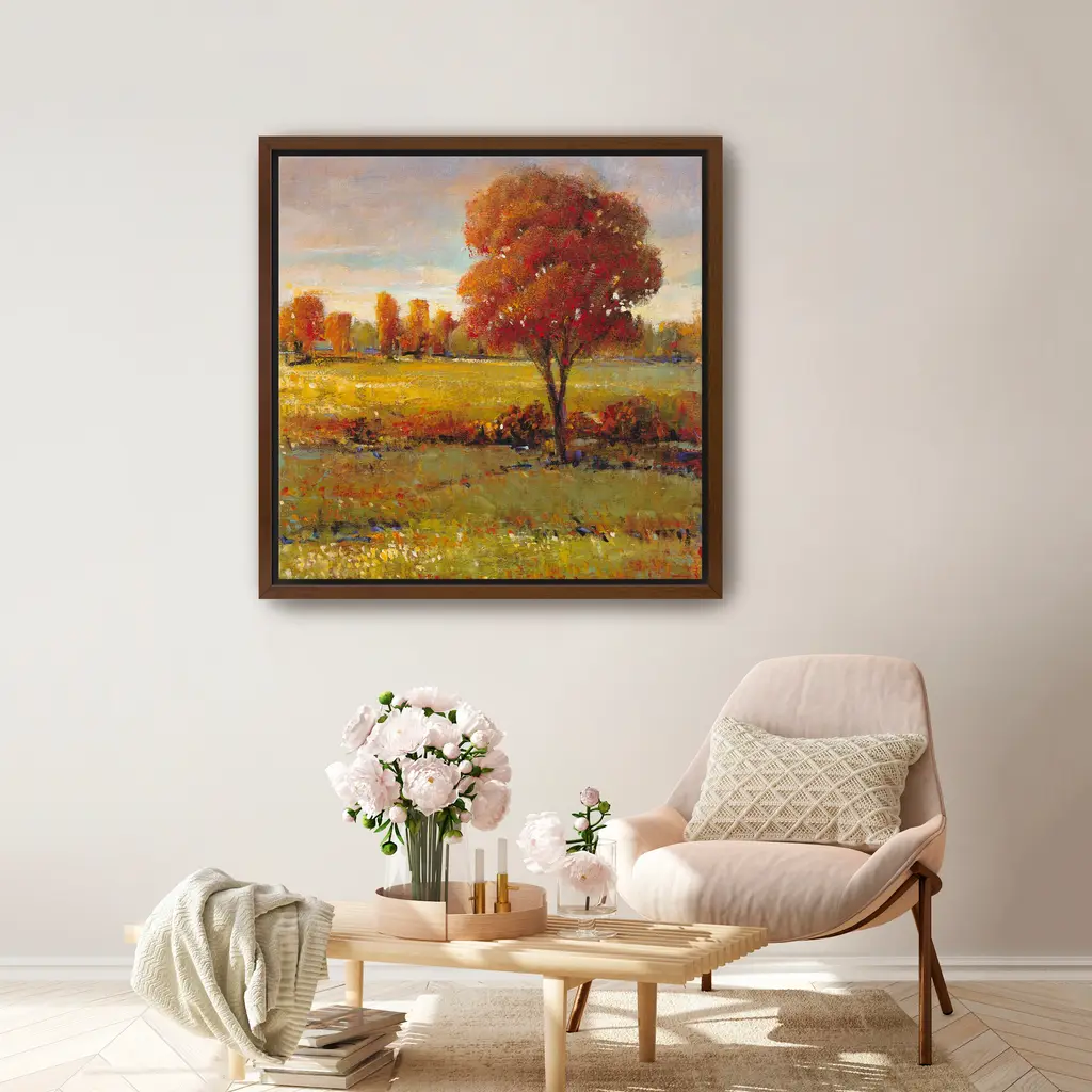 Field In Fall Canvas Giclee - Framed / Oak / 20x20