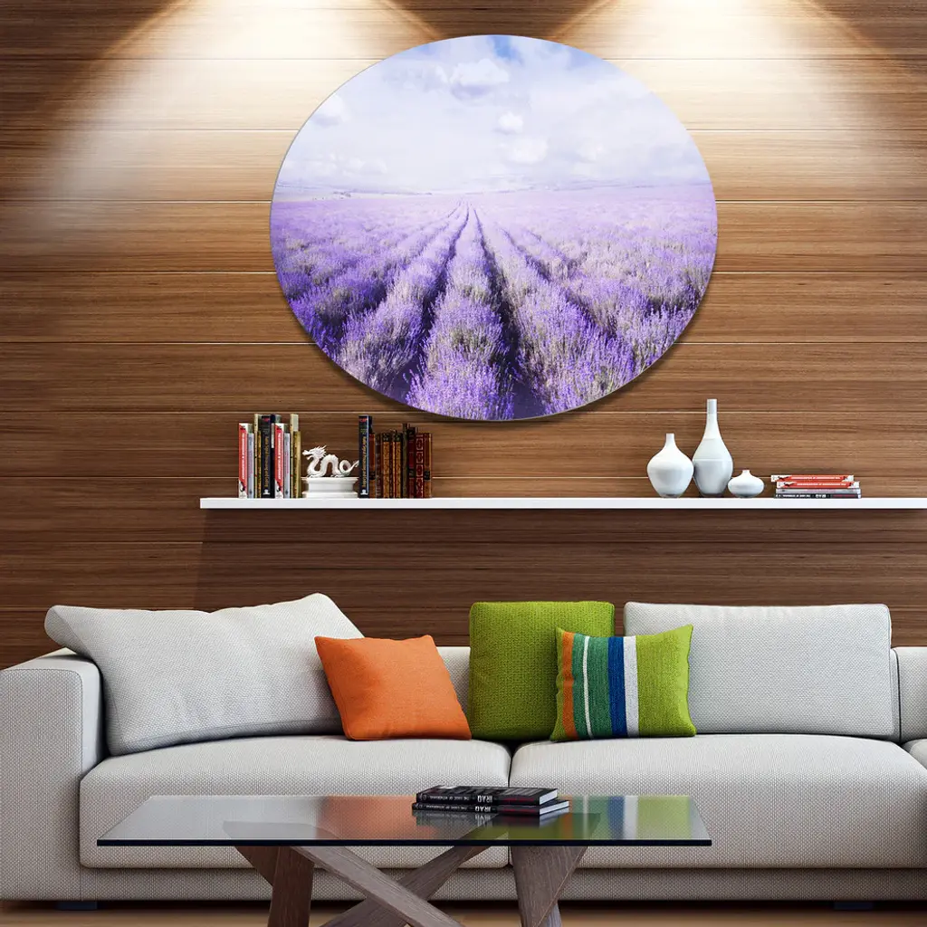 Fields Of Lavender Against Blue Sky, Landscape Disc Metal Artwork, 36"