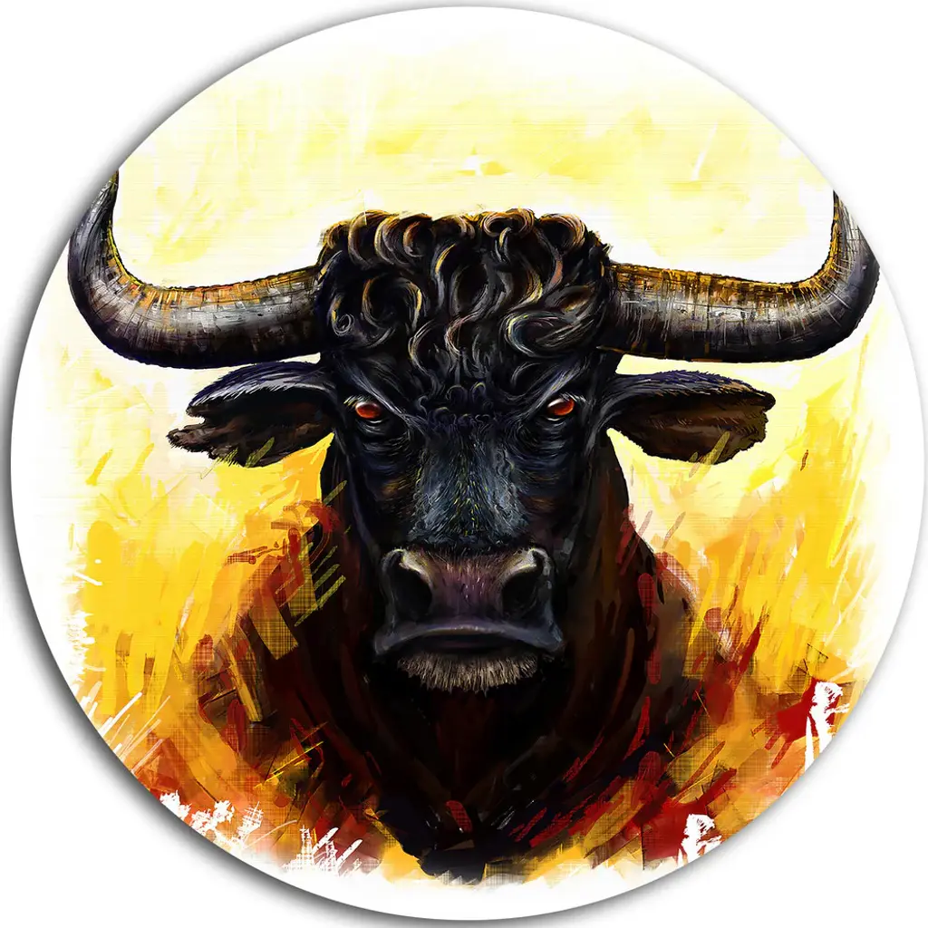 Bring contemporary abstraction to your home with this large 36W x 28H Metal Wall Art. This Fierce Bull Illustration Metal Artwork makes it the focal point of any room or office. - White gloss coating ensures colors are extra vibrant with light reflection.- Aluminum grade sheet metal with 1 inch mounting frame on the back giving the illusion that the artwork is floating on the wall..- Mounting brackets are included along with instructions.- High quality digital images are created directly into a glossy aluminum panel producing a stunning and captivating print into the glossy finish of the metal.- Water, fire and scratch resistant HD aluminum panels.- Looks better than any photo paper and guaranteed to last at least 20 years- Easy to clean with a microfiber cloth. Colors are far superior to regular canvas art. - Easy to hang