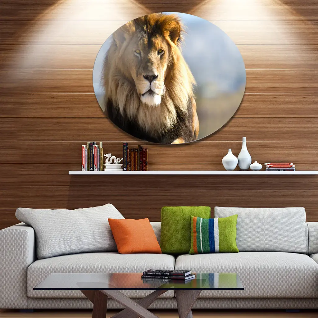 Bring Contemporary Abstraction to your home with this large Circle Metal wall art. This Fierce Face of King of the Wild Metal Artwork makes it the focal point of any room or office. - White Gloss Coating ensures colors are extra vibrant with light reflection.- Aluminum grade Sheet Metal with 1 inch mounting frame on the back giving the illusion that the artwork is floating on the wall..- Mounting Brackets are included along with instructions.- High Quality Digital images are created directly into a glossy aluminum panel producing a stunning and captivating print into the glossy finish of the metal.- Water, Fire and Scratch resistant HD Aluminum panels.- Looks better than any photo paper and guaranteed to last at least 20 years- Easy to clean with a microfiber cloth. Colors are far superior to regular Canvas Art. - Easy to Hang