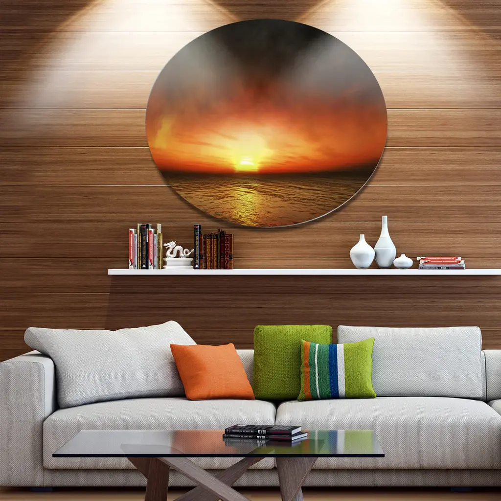 Fiery Sunset Beach Under Cloudy Sky, Seashore Round Wall Art, 36"