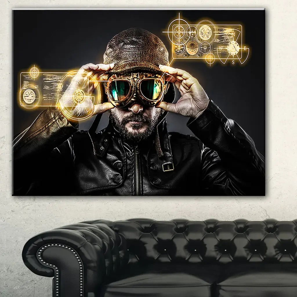 "Fighter Pilot With Hat And Glasses" Portrait Digital Art Canvas Print