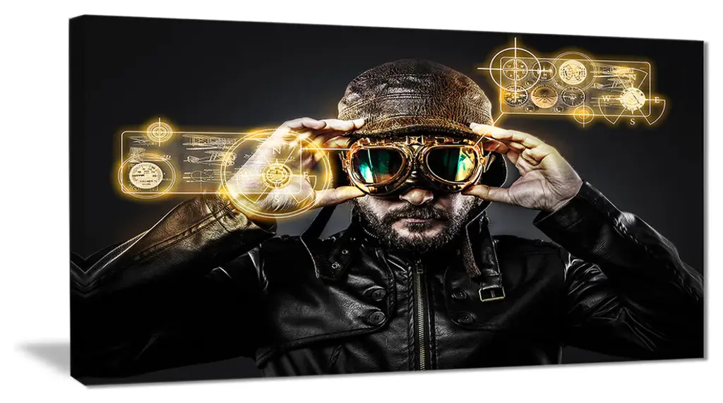 Bring Contemporary Abstraction to your home with this large Circle Metal wall art. This Fighter Pilot with Hat and Glasses Metal Artwork makes it the focal point of any room or office. - White Gloss Coating ensures colors are extra vibrant with light reflection.- Aluminum grade Sheet Metal with 1 inch mounting frame on the back giving the illusion that the artwork is floating on the wall..- Mounting Brackets are included along with instructions.- High Quality Digital images are created directly into a glossy aluminum panel producing a stunning and captivating print into the glossy finish of the metal.- Water, Fire and Scratch resistant HD Aluminum panels.- Looks better than any photo paper and guaranteed to last at least 20 years- Easy to clean with a microfiber cloth. Colors are far superior to regular Canvas Art. - Easy to Hang