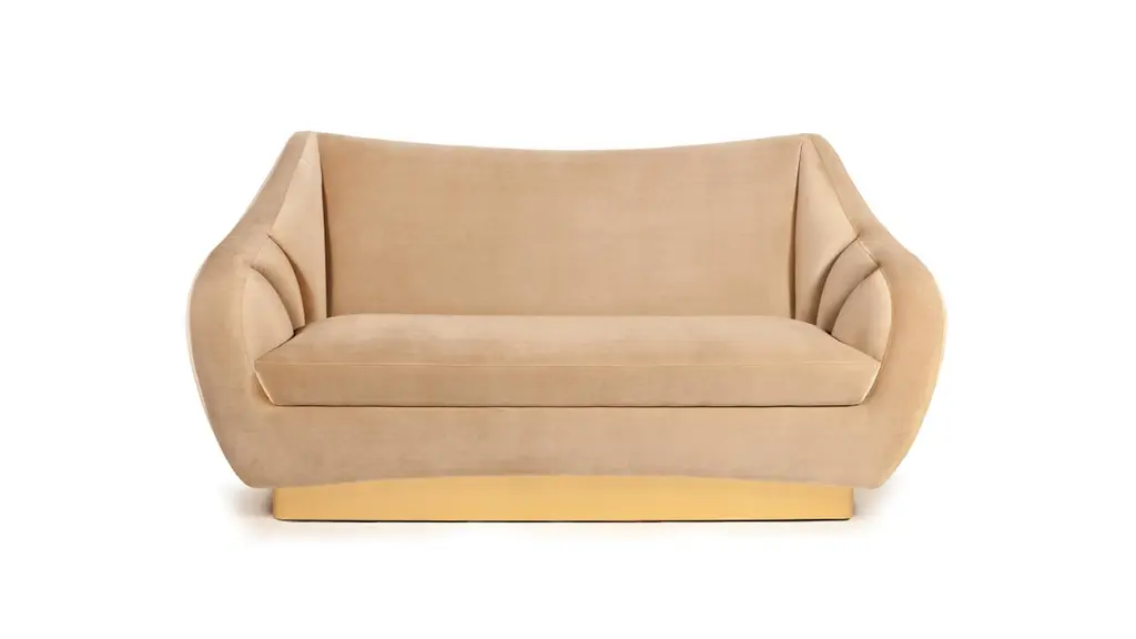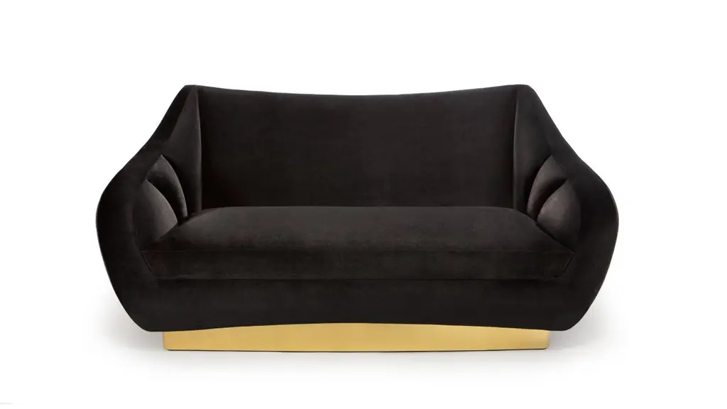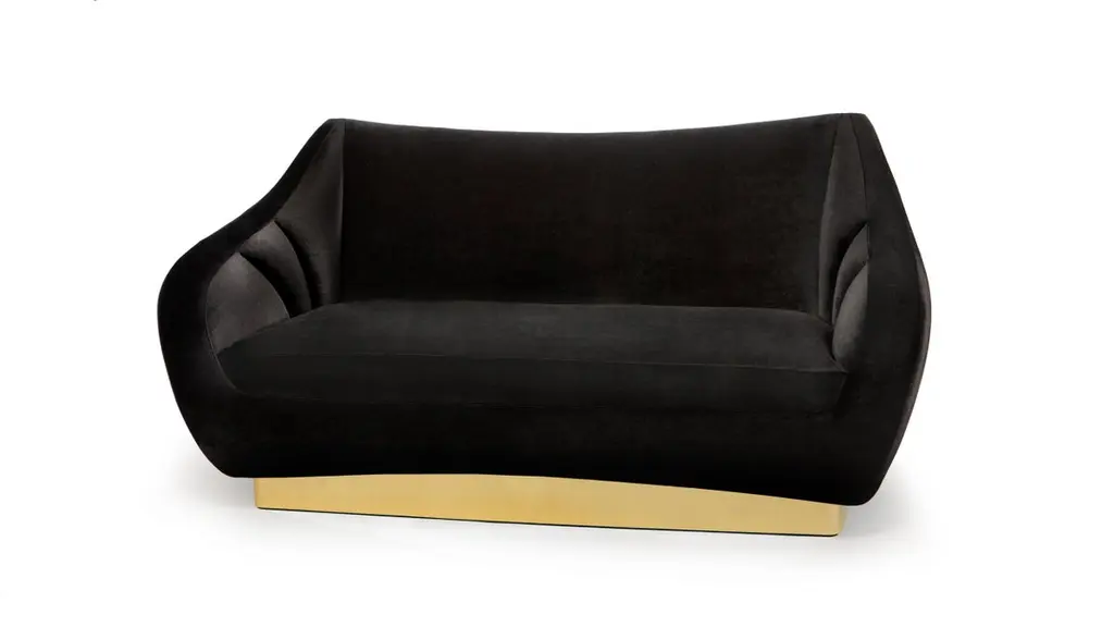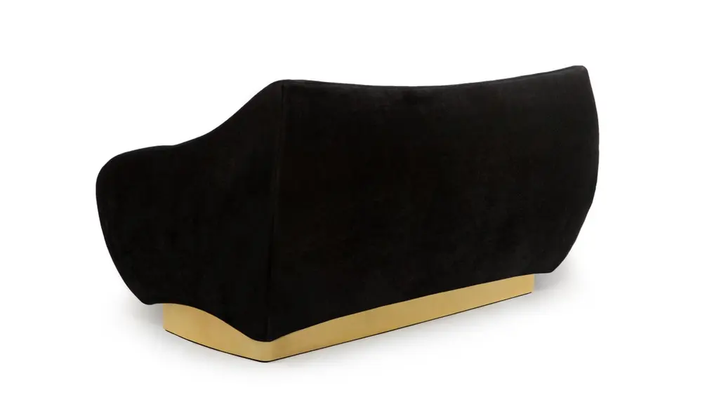 Figueroa 2 Seat Sofa by InsidherLandDimensions: D 90 x W 180 x H 90 cm.Materials: Brushed brass, InsidherLand Bright Velvet Ref. Onyx fabric.70 kg.Available in different fabrics.Evoking the Californian mountain, Figueroa sofa has the same lines of the original armchair. The exterior represents the long curves of Figueroa mountain while the mountainside ripples were placed on the inside. The top of the sofa features the great bow of the skyline and the yellow tone of the ground is replaced by the base in brushed brass. Both soft velvet and brass are reunited in the soft curves that go all around this compact creation. Just like the mountain meets the land.Created by Architect Joana Santos Barbosa in 2012, InsidherLand is a Portuguese brand of exclusive design. Drawn with the signature of the creator, the impressive range of contemporary luxury furniture, lighting, upholstery and accessories are connected to her personal memories and have been highlighted for their innovative and soulful designs.Joana explores several influences from travels around the world to define her own Land as a place that allows her to translate her perceptions into objects of art.The essence of InsidherLand is presented by two inspiring collections. Beyond Memory Collection is deeply influenced by organic forms of nature, legends and traditional cultures, as for the Identity Collection is molded by forms of Architecture and Art. Both collections are designed as a dialog in which nature meets strong architectural lines to create relaxed and sophisticated interiors surrounded by natural materials and meaningful art pieces.Being positioned in strategic markets of high-end luxury decoration, InsidherLand team is proud of working with the best architects and interior design studios from all over the world who seek for handmade exclusive objects that arouse emotions and stand out in exquisite spaces.We are dedicated with love and enthusiasm into every creation to surprise a sensitive but demanding public. Using the expertise of traditional craft techniques, all creations are made by the hands of Portuguese master craftsmen and jewelers who wisely sculpt them in noble materials, finalizing every detail with elegance and perfection.