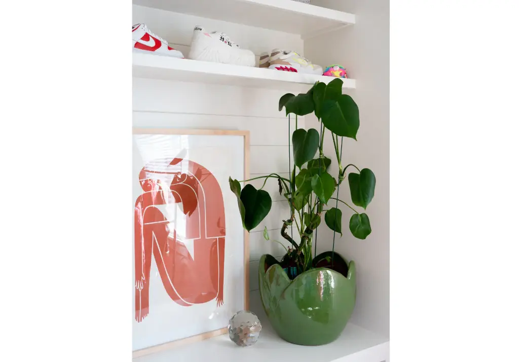 Inspired by the abstract and linear, this artwork lends a modern, minimalist touch. Its bold terracotta color is set on a neutral matte with a natural American maple frame.