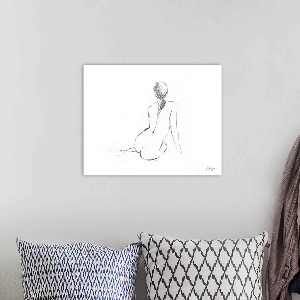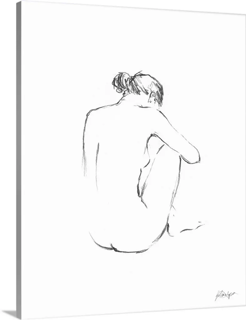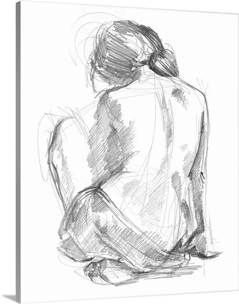Simple sketch of a nude female figure, seen from the back.