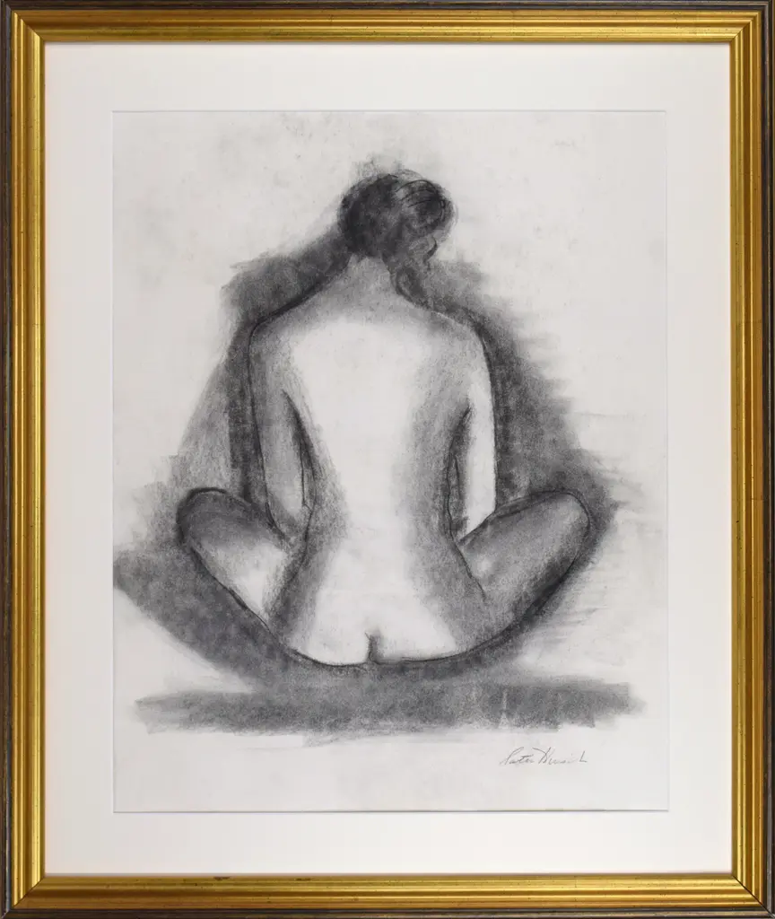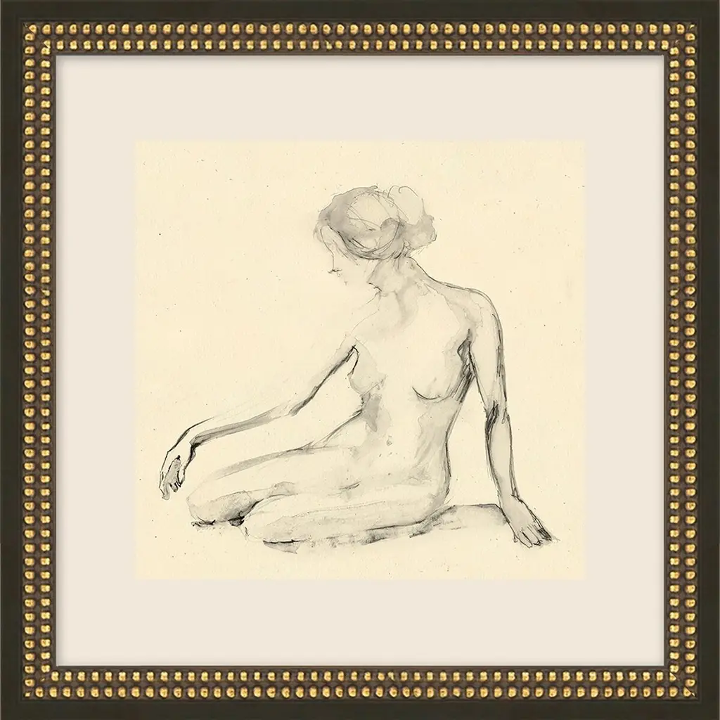 Designed by us and available only at One Kings Lane: This classic figure sketch is faithfully reproduced here on deckled matte paper and beautifully framed under glass with a taupe-colored mat. Arrives ready to hang.